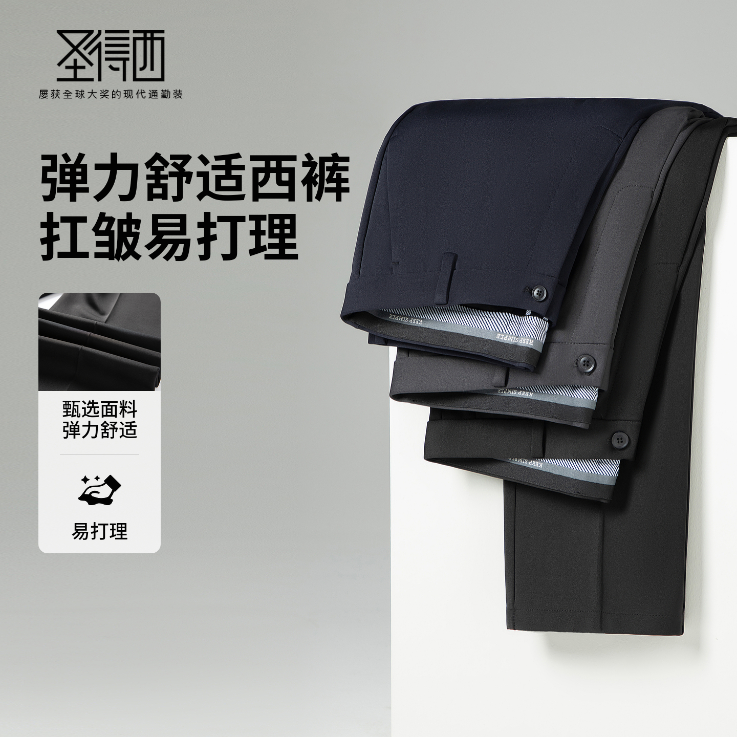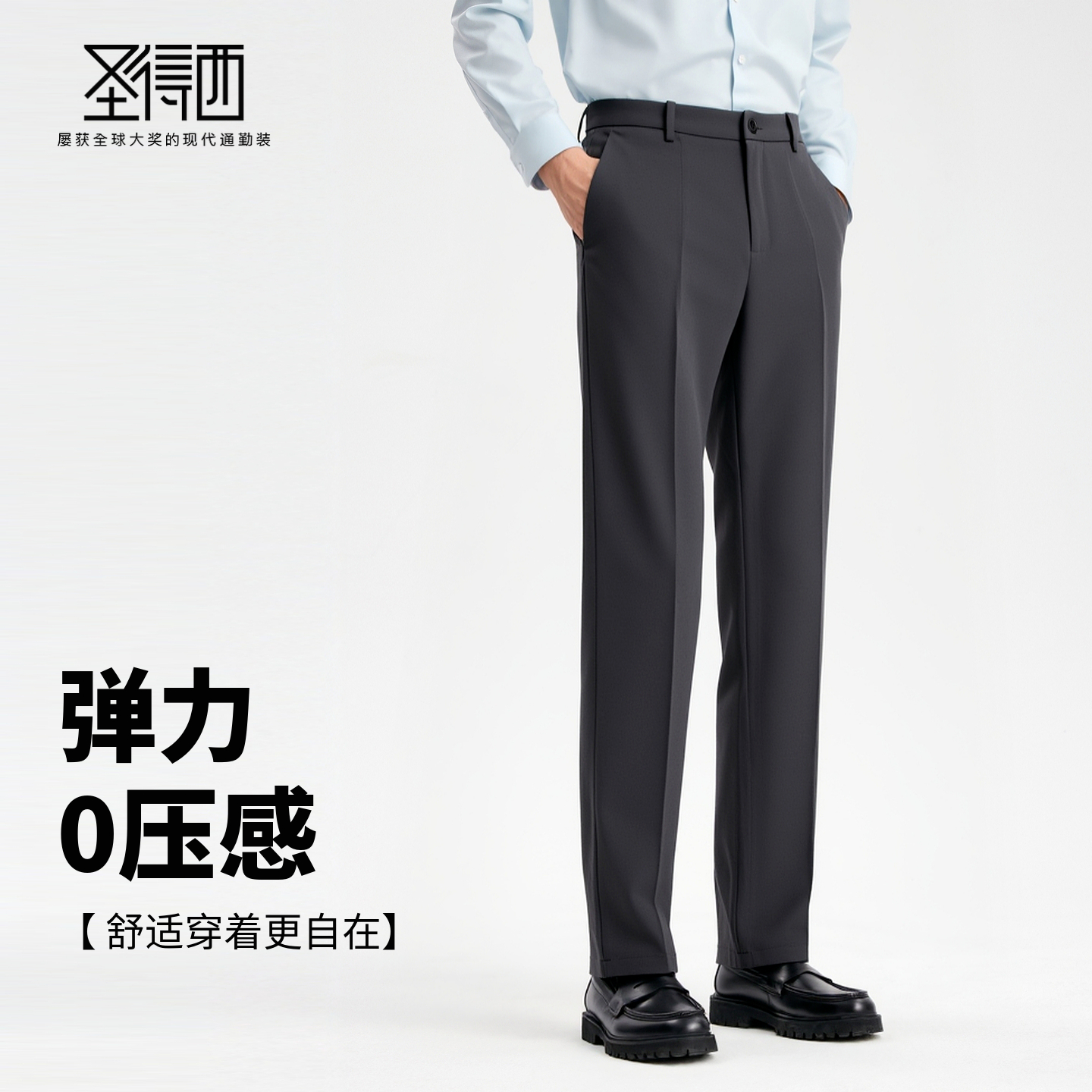 男西装 抗皱垂顺修身 裤 九分商务休闲黑色高级灰长裤 子男 男士 西裤