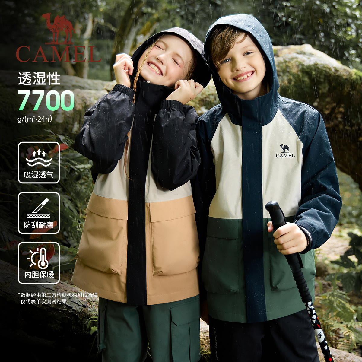 小骆驼儿童冲锋衣三合一外套2025新款 防风防水户外服男童保暖外套