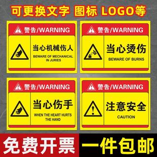 当心机械伤人标识牌警示贴工厂生产车间机器设备注意安全温馨提示牌当心小心伤手夹手机械伤害贴纸标志告示牌