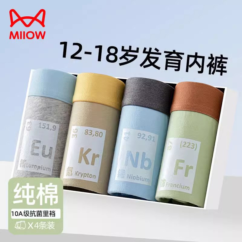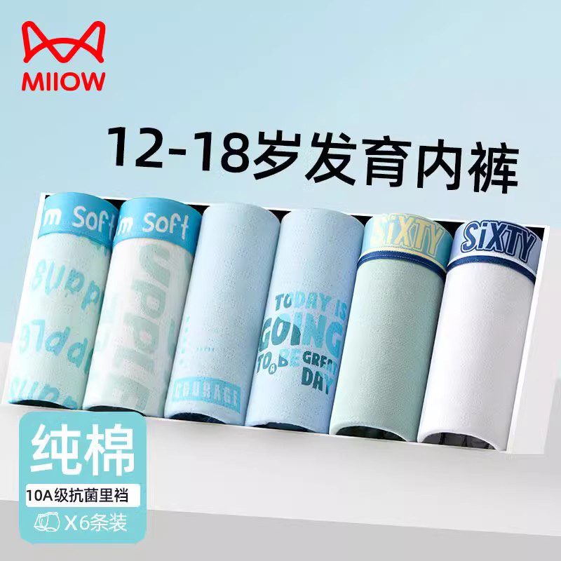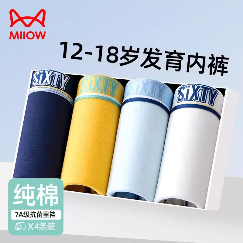 新款 3件 纯棉透气裆青少年四角短裤 平角内裤 男生 蕉内银皮311S男士