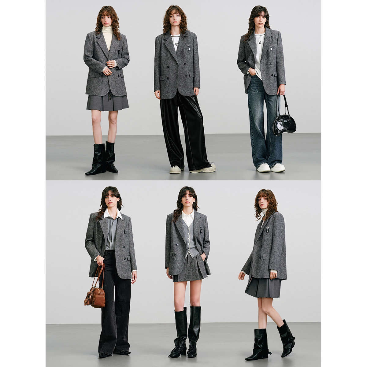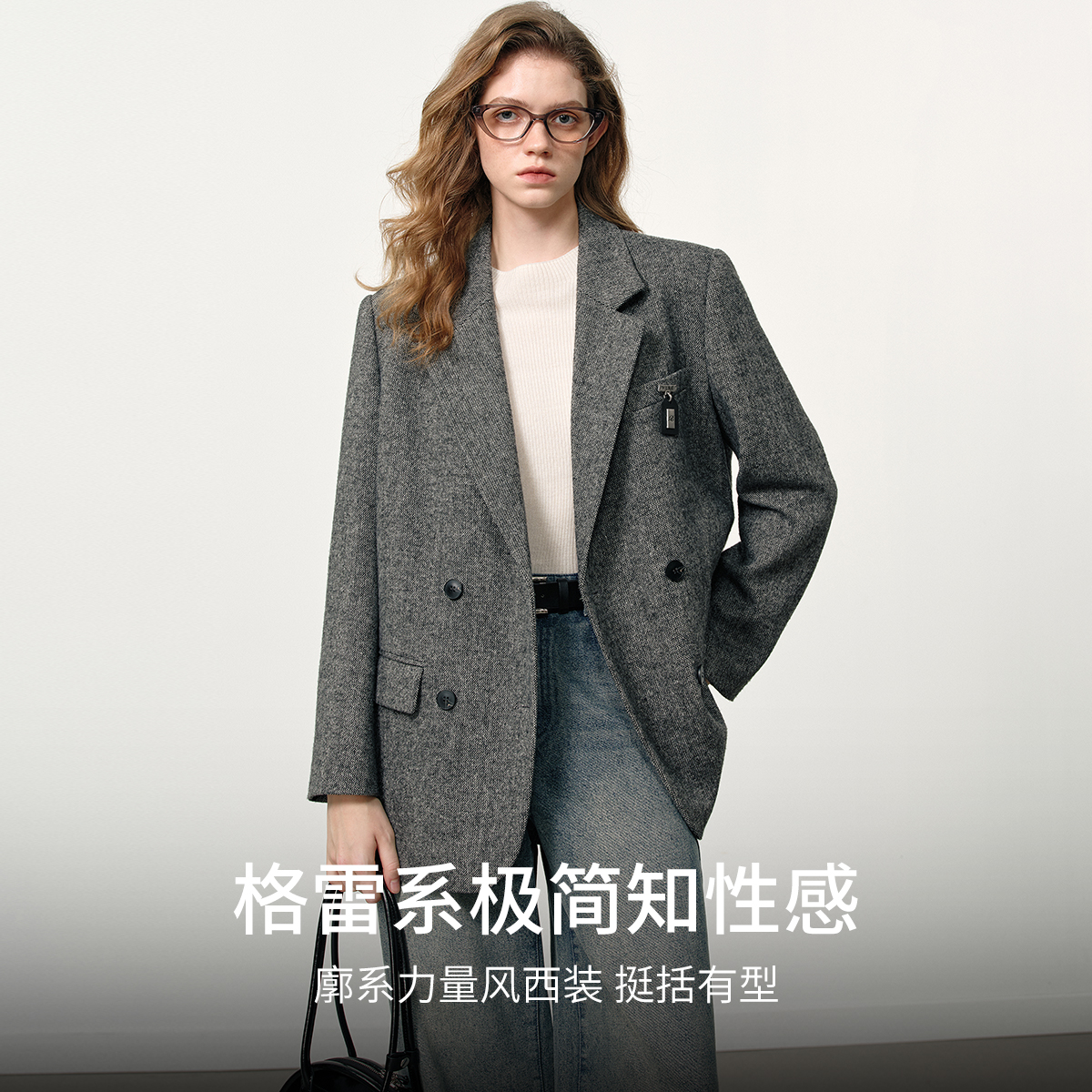 气质优雅百搭通勤外套 新款 秋水伊人宽松西装 领毛呢大衣女2025冬季
