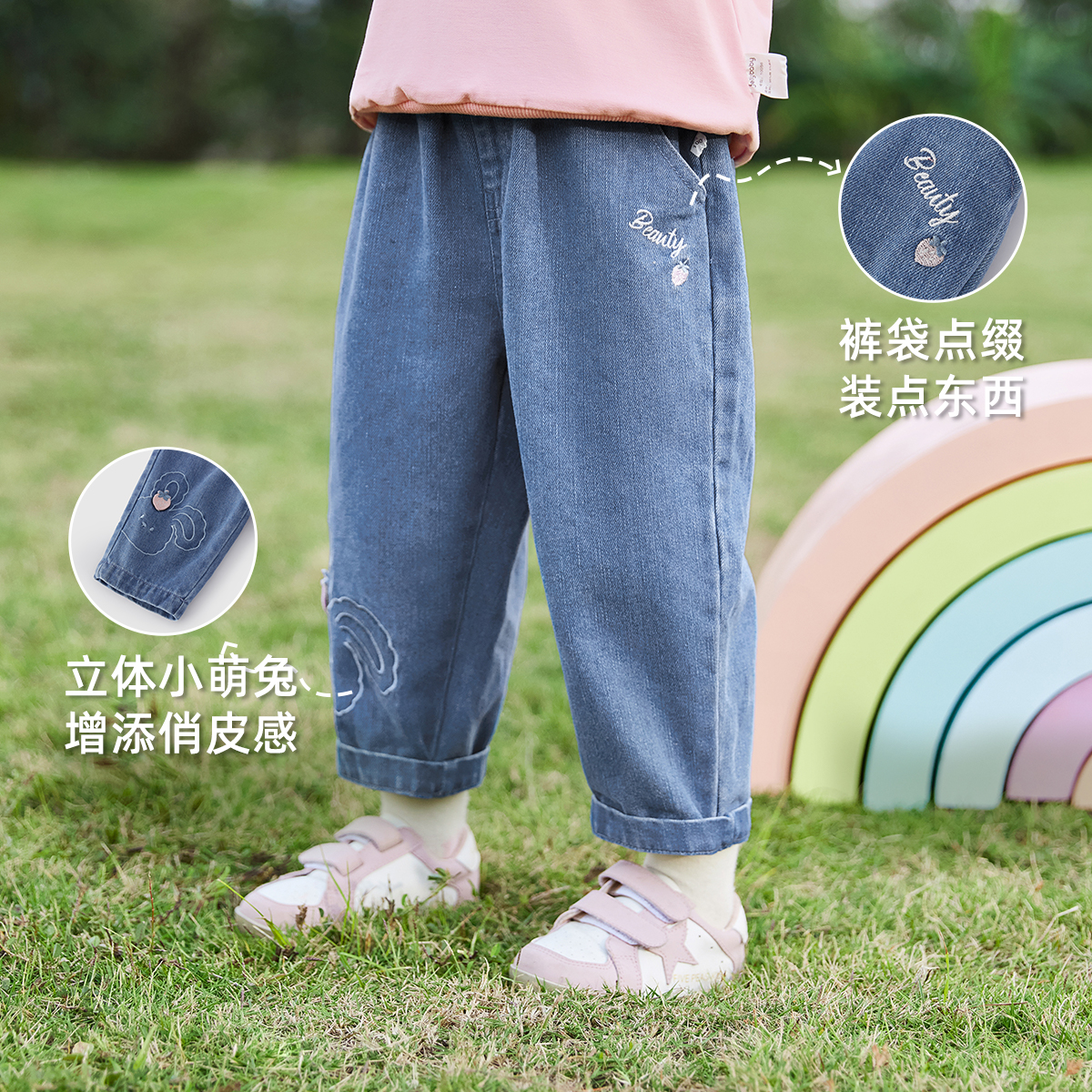 女孩秋冬新款 儿童牛仔裤 宝宝加绒长裤 老爹裤 子女童 百搭裤 7A抗菌