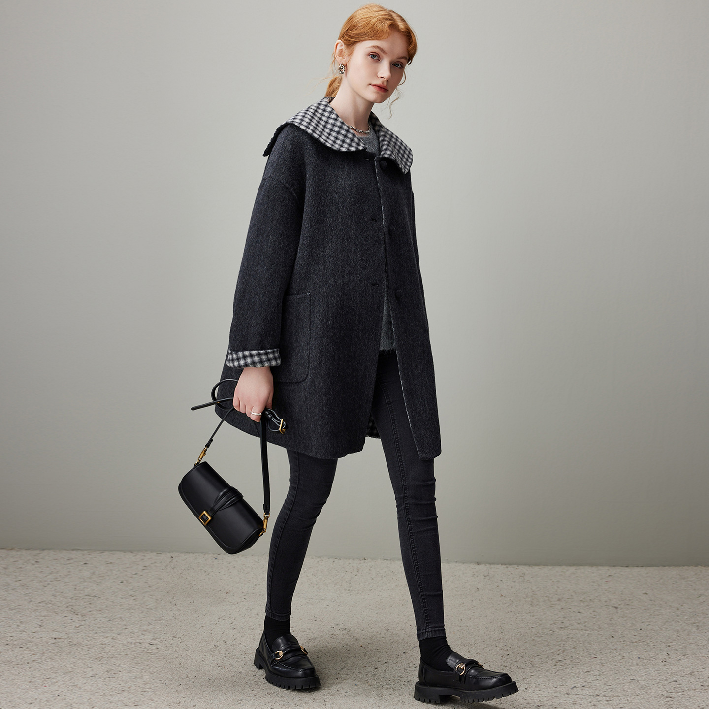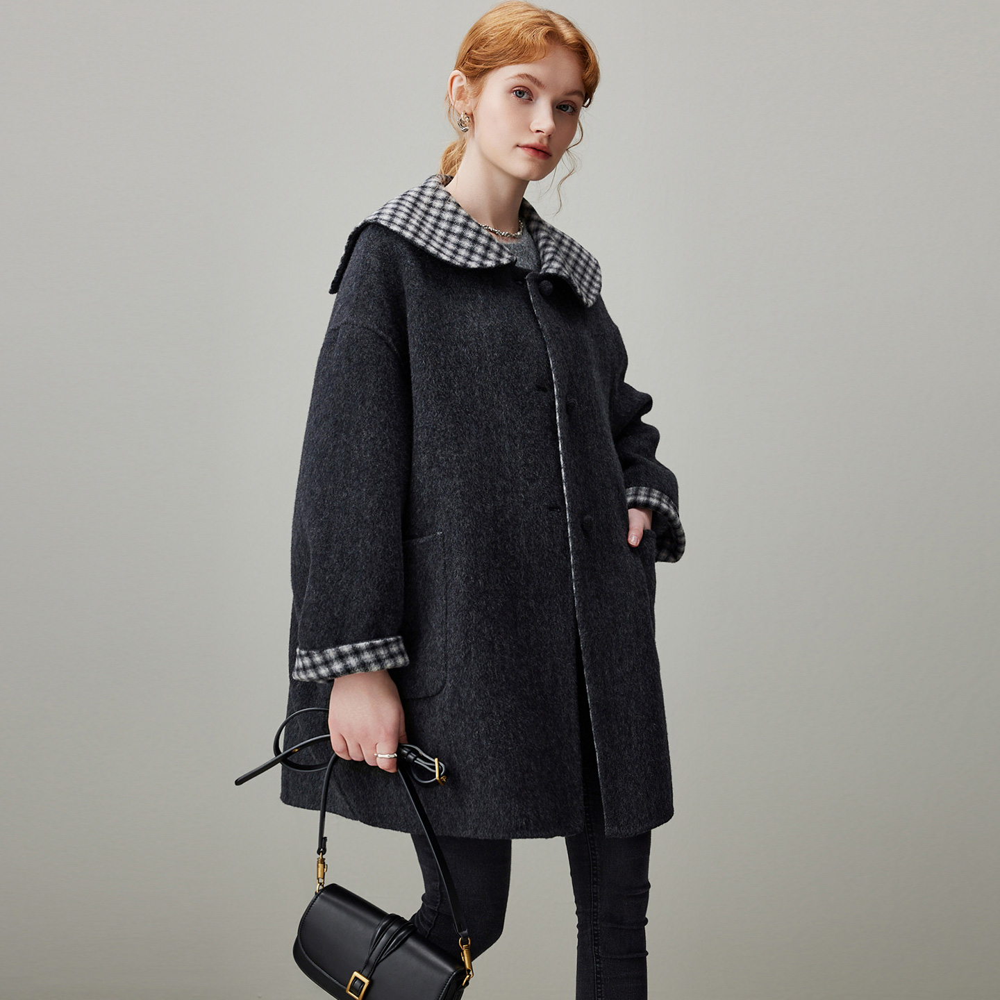 新款 2025冬季 秋水伊人优雅翻领毛呢外套 通勤大衣 100%绵羊毛