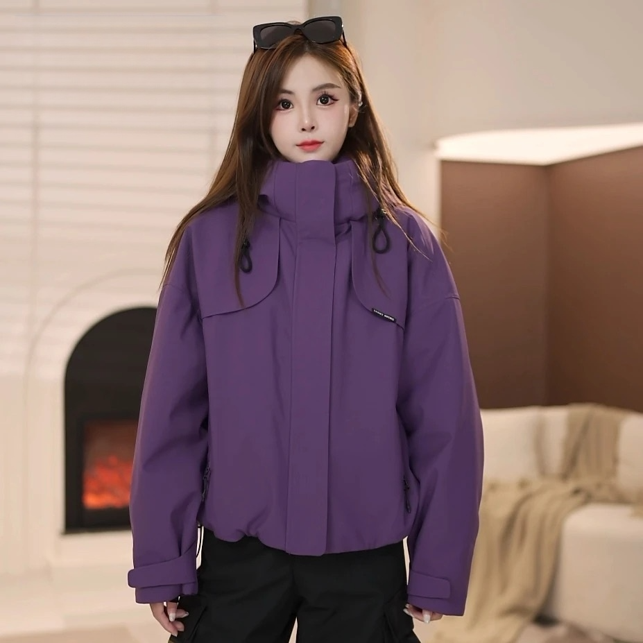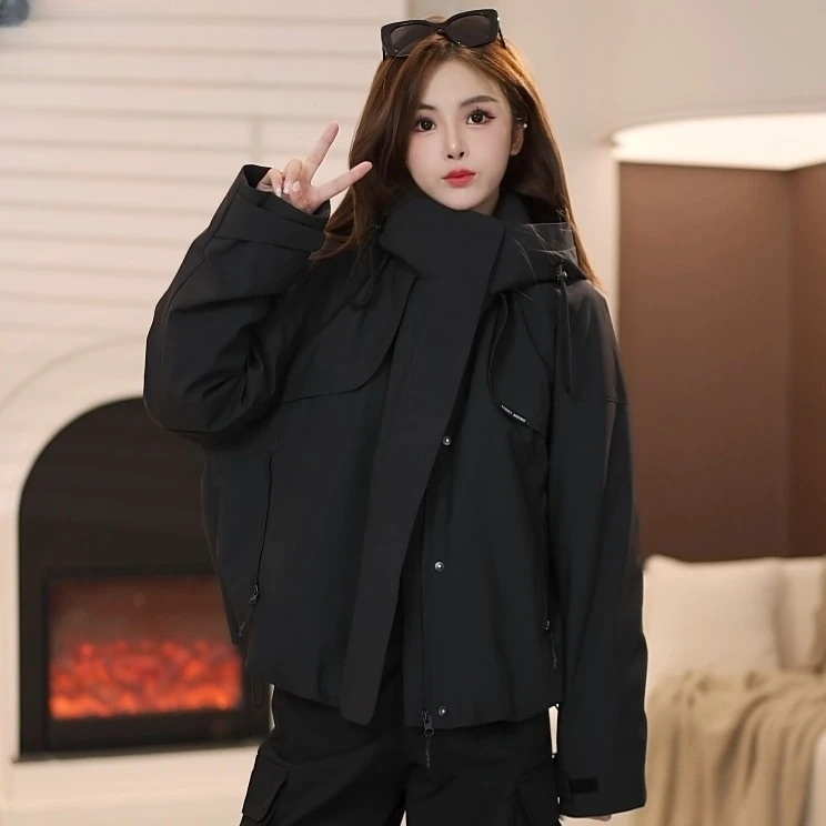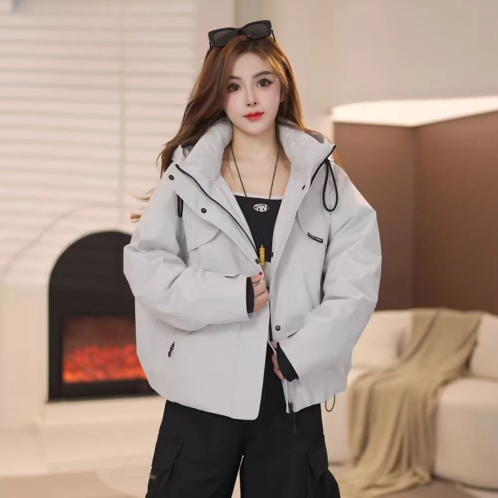 服 休闲百搭小个子夹棉外套保暖工装 连帽冲锋衣棉服女2025冬款 时尚