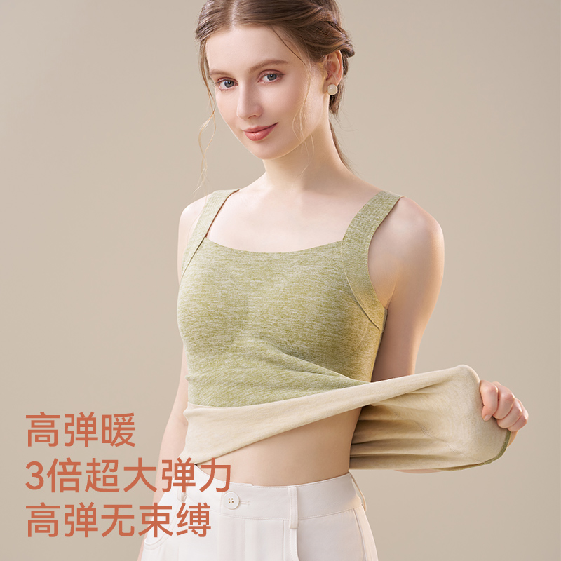 双面德绒带胸垫保暖背心女无痕自发热打底上衣吊带内衣加绒秋冬季
