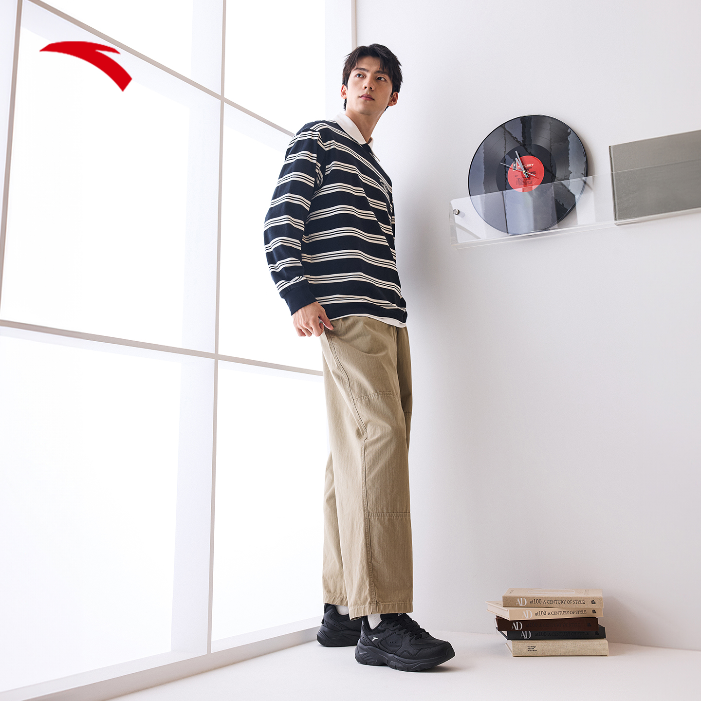 秋季 新款 官方正品 安踏男鞋 休闲跑步鞋 男款 黑色皮面男士 子男 运动鞋