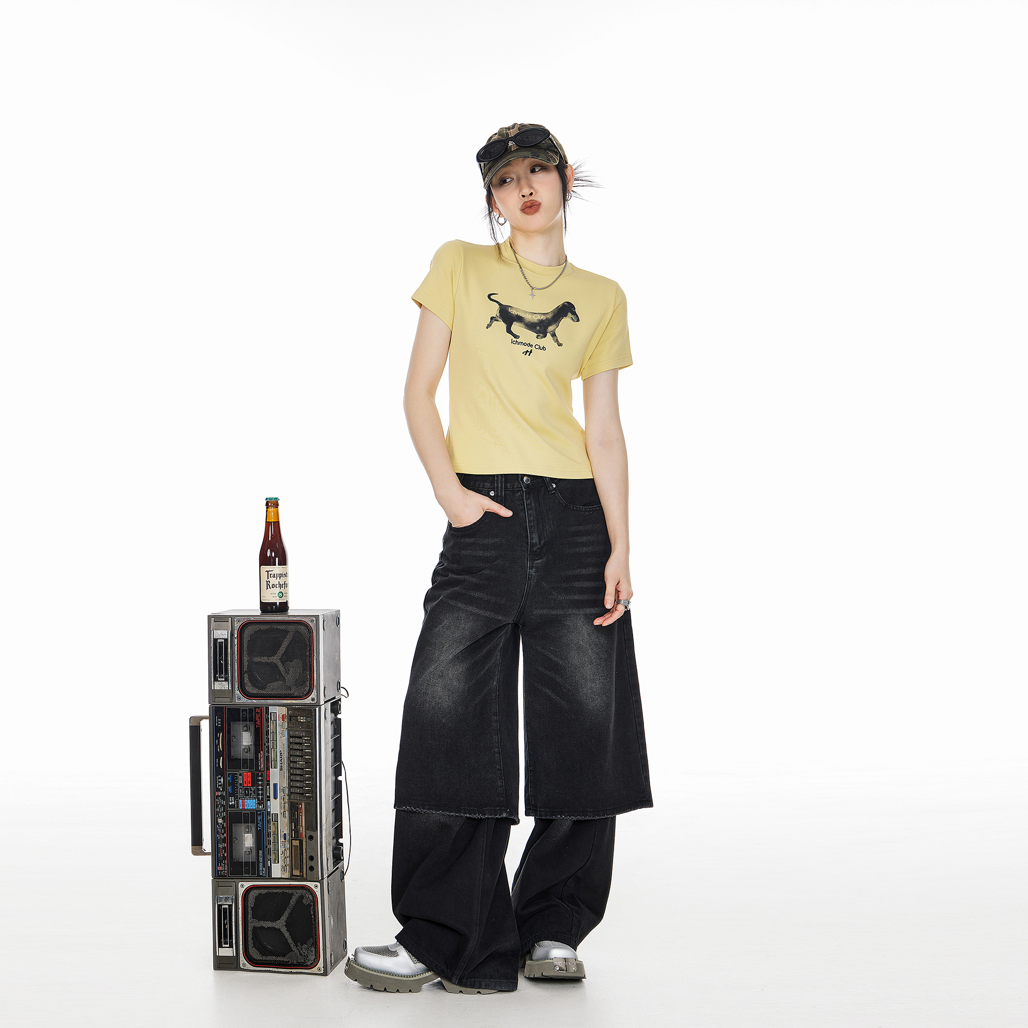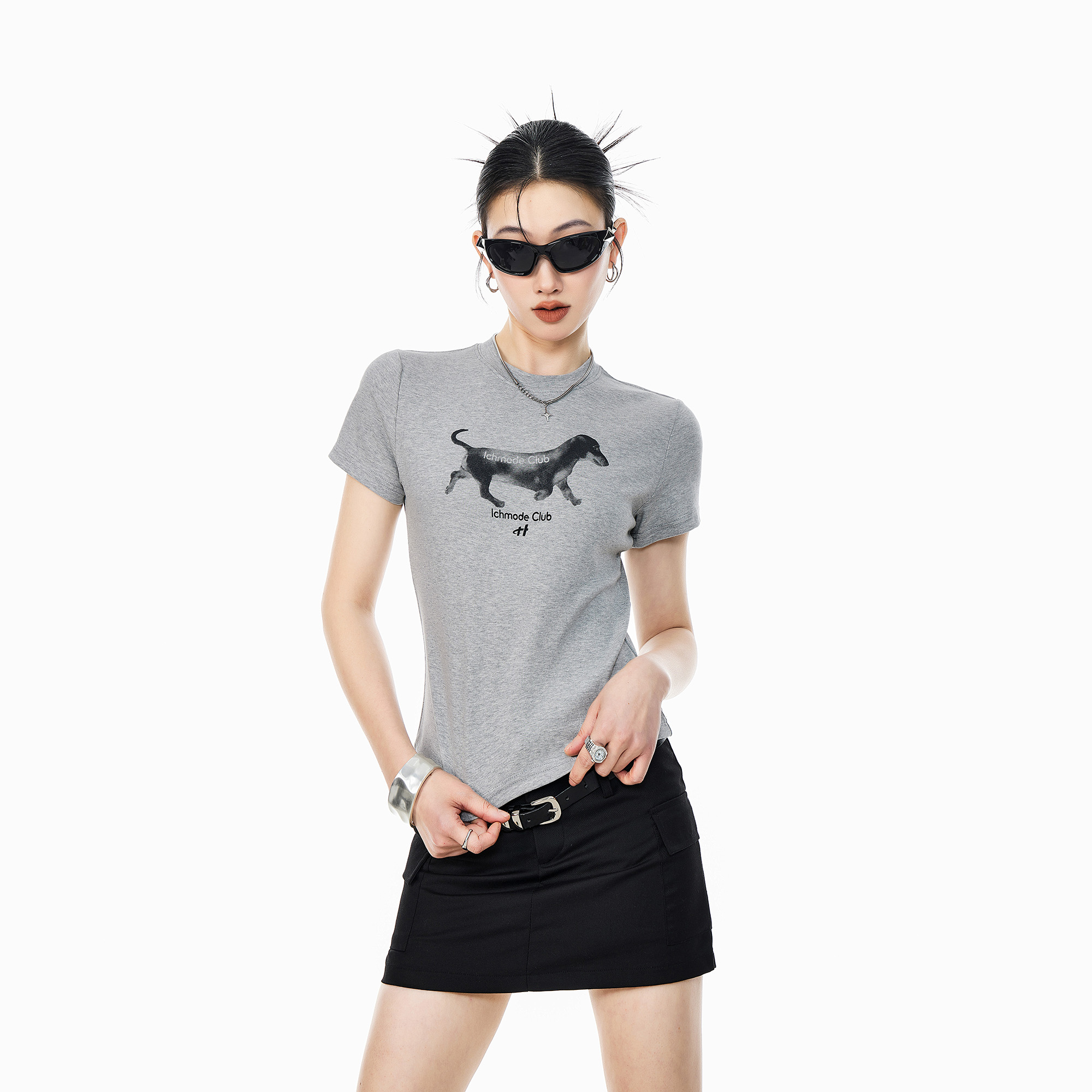 MODE甜酷修身 新款 美式 上衣正肩显瘦潮流夏季 百搭T恤 复古短袖 ICH