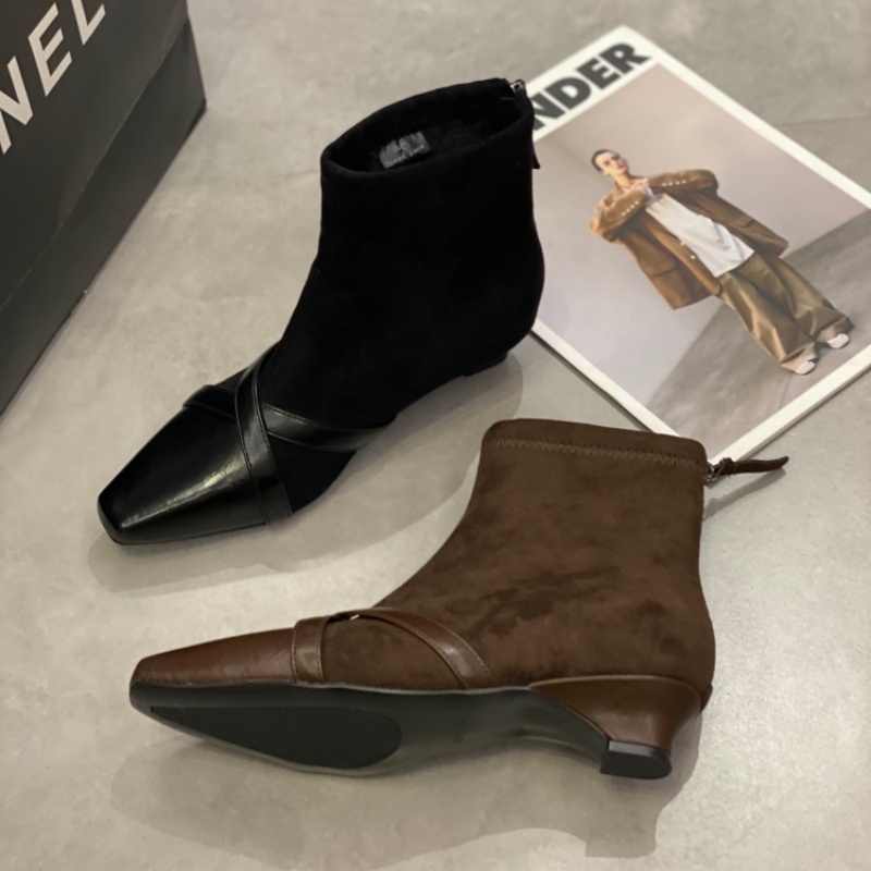 舒适辣妹尖头粗跟瘦瘦靴女靴小短靴 马丁靴女鞋 短靴女2025新款 时尚