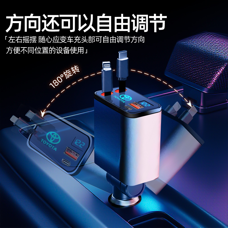 适用丰田RAV4荣放卡罗拉锋兰达超级快充车载充电器点烟器转换插头