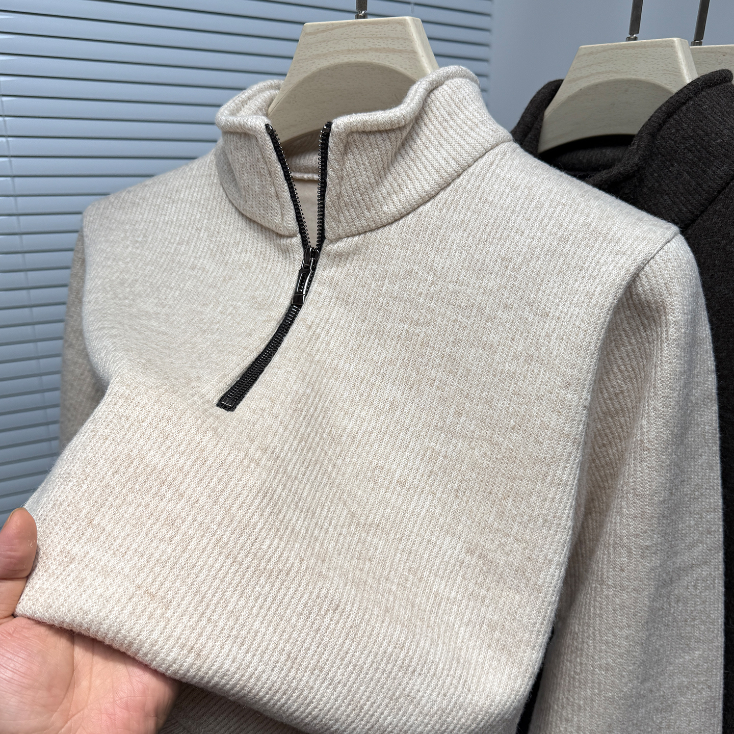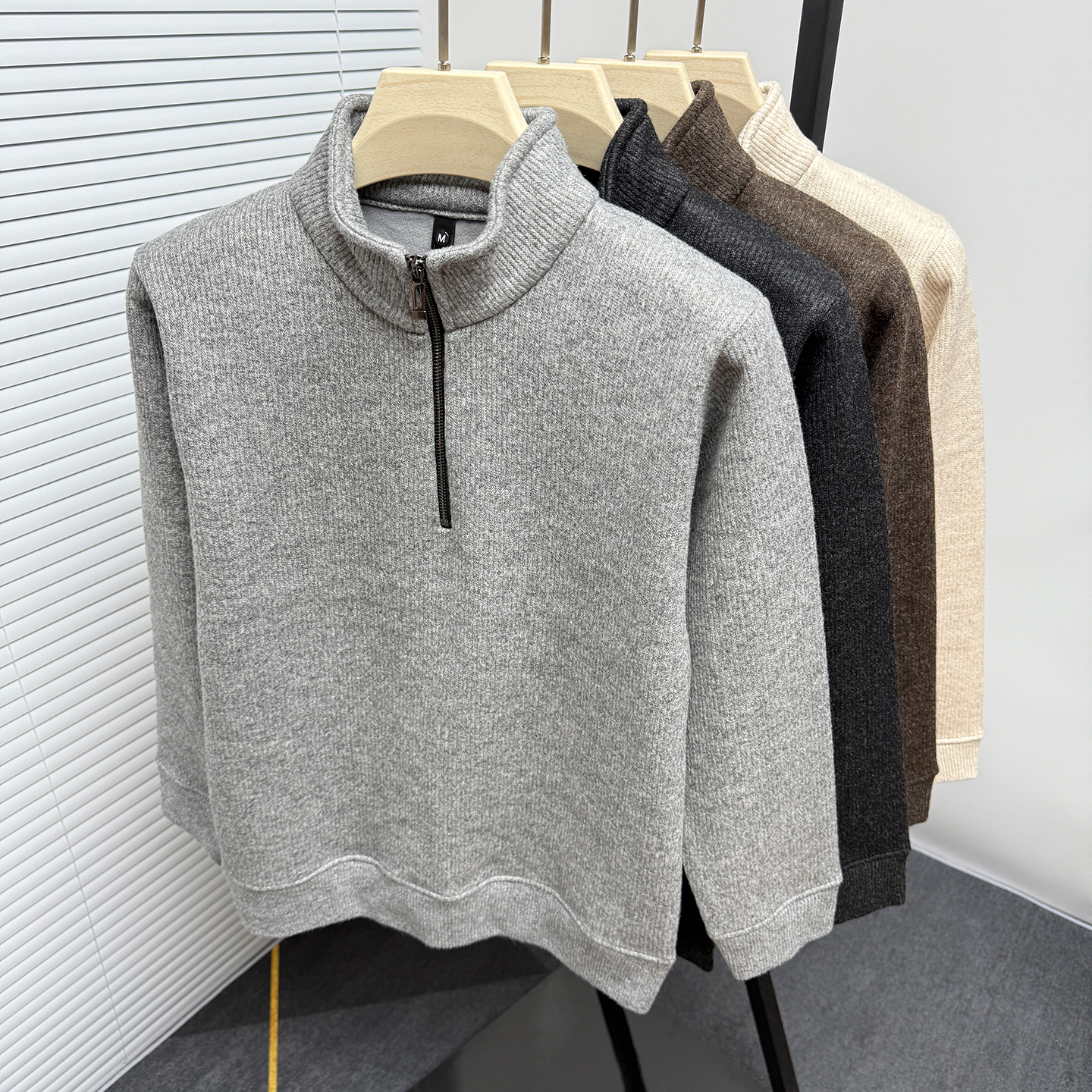 立领半拉链休闲保暖打底衫 男装 秋冬季 一体绒毛衣男加绒加厚针织衫
