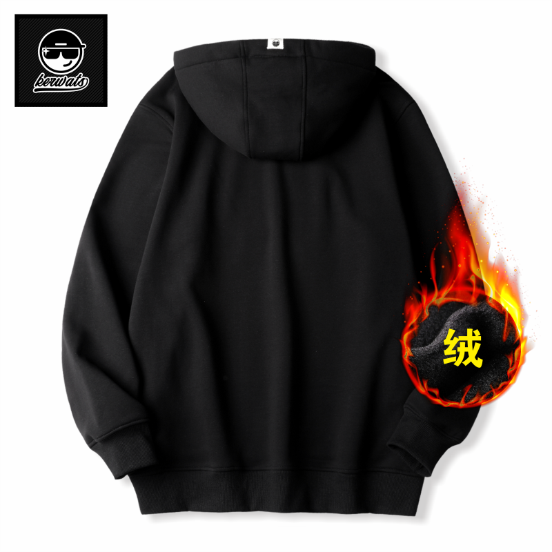 KERWATS品牌大码 加绒连帽卫衣 男女情侣小马卡通印花马年学生冬季