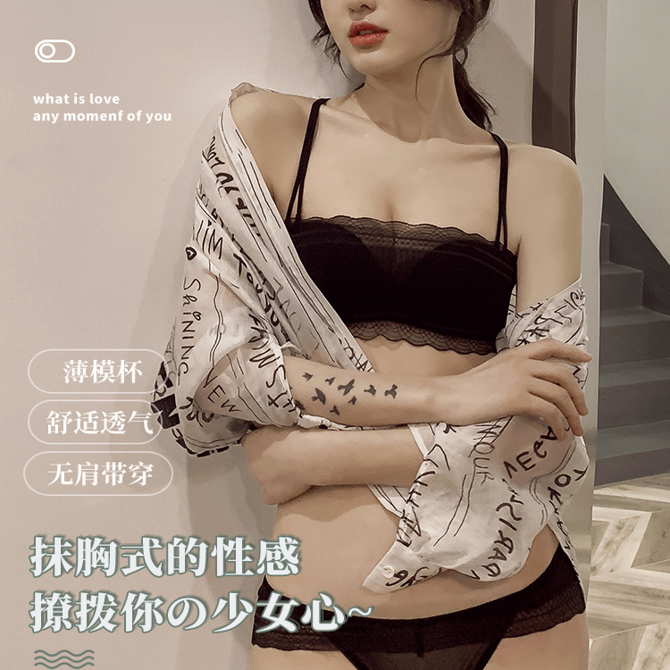 好奇蜜斯小胸聚拢内衣女薄显大无钢圈蕾丝文胸罩套装 防下垂夏 法式