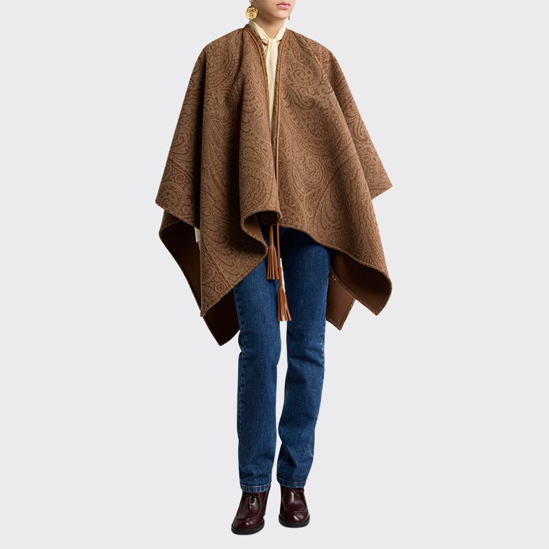 ETRO艾绰 女士佩斯里提花图案羊毛羊绒提花斗篷披肩 25秋冬新款