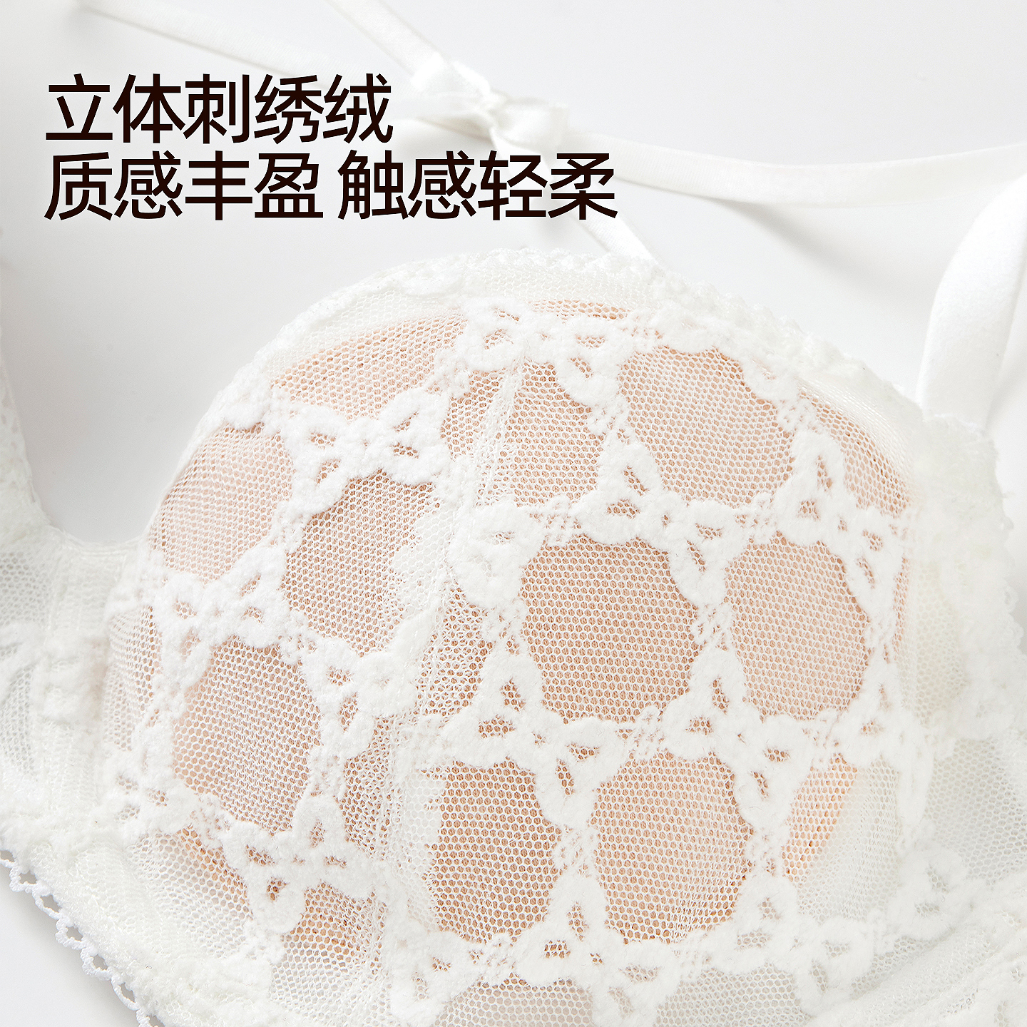 好奇蜜斯性感内衣女蕾丝纯欲大胸显小文胸罩套装 小胸薄不空杯新款