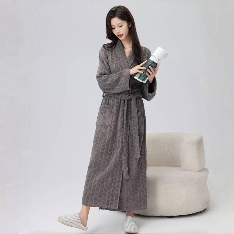 洁丽雅浴袍男女秋冬睡袍纯棉毛巾料吸水速干酒店加厚情侣新款 浴衣
