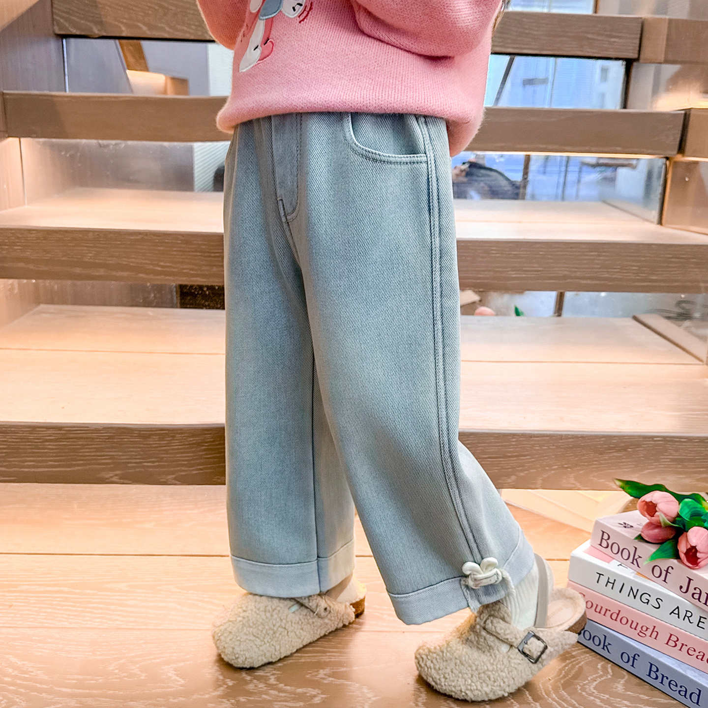 女宝宝加厚长裤 女童冬季 洋气时髦直筒牛仔裤 子儿童2025新款 加绒裤