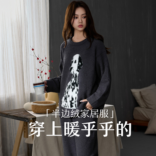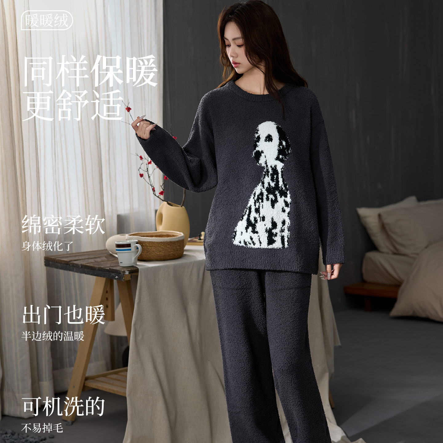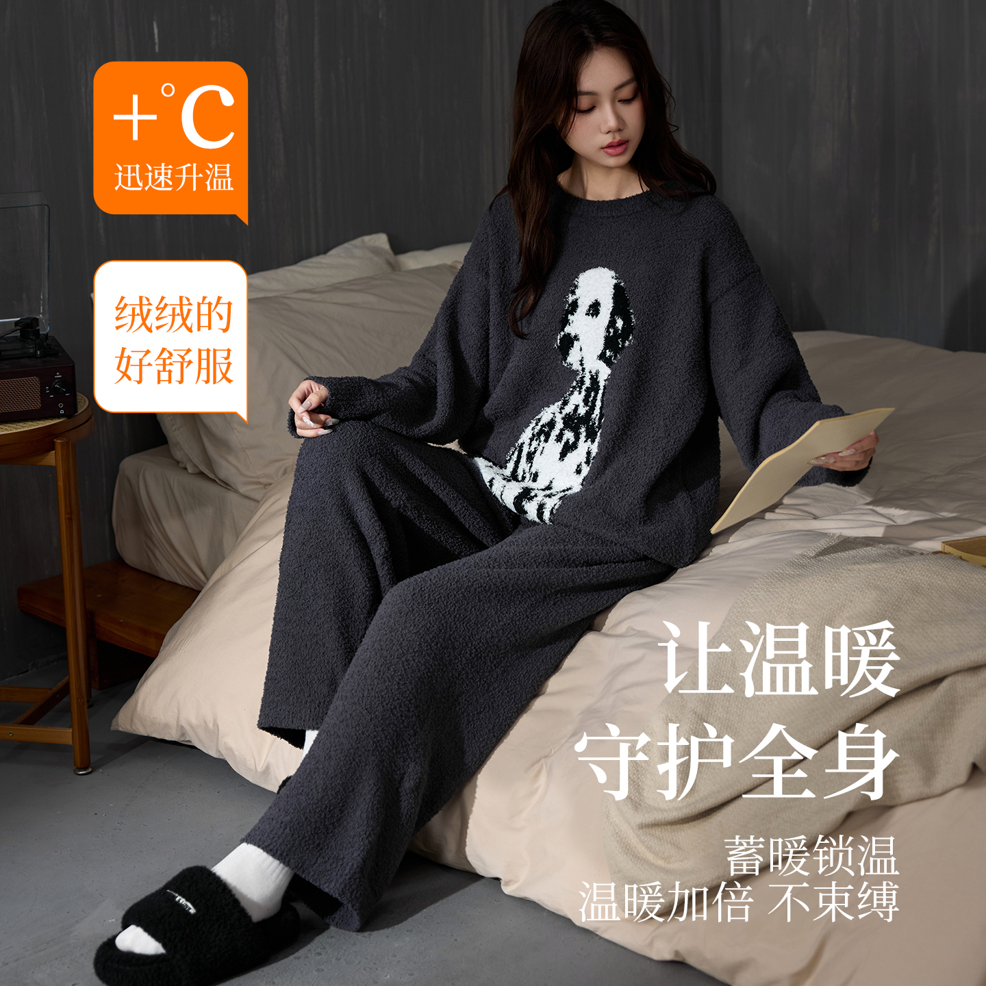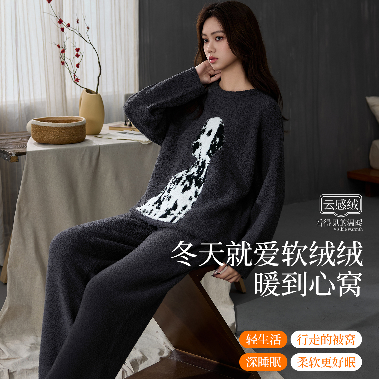 家居服春秋新款 加厚法兰绒加绒套装 珊瑚绒睡衣女秋冬季 2025年冬款