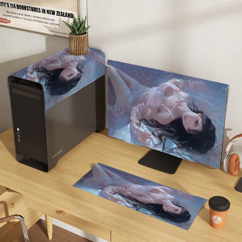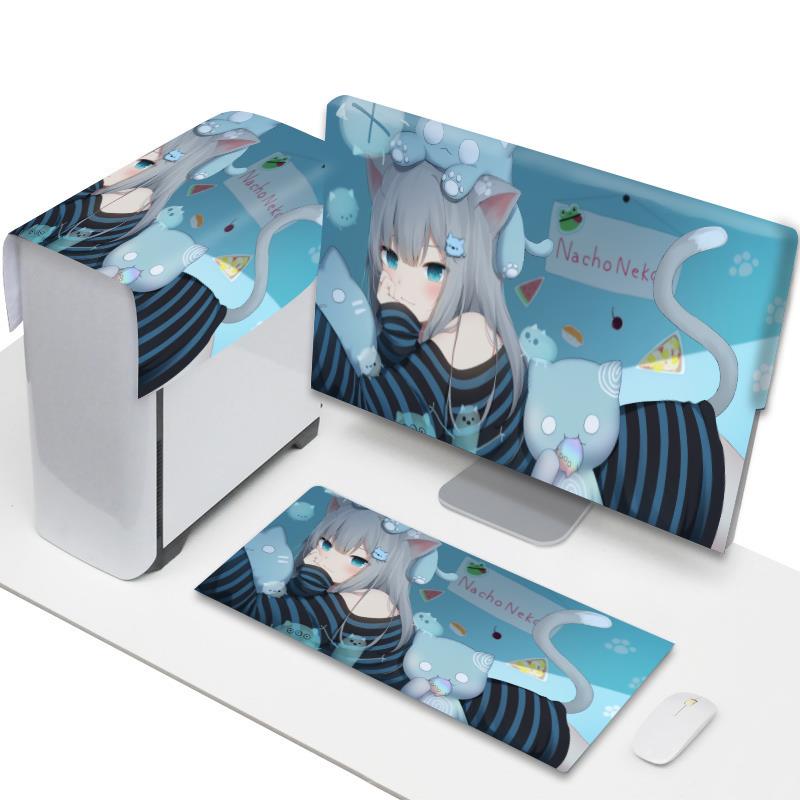 电脑防尘罩套台式 可爱少女显示器键盘主机防尘盖布三件套24寸 日式