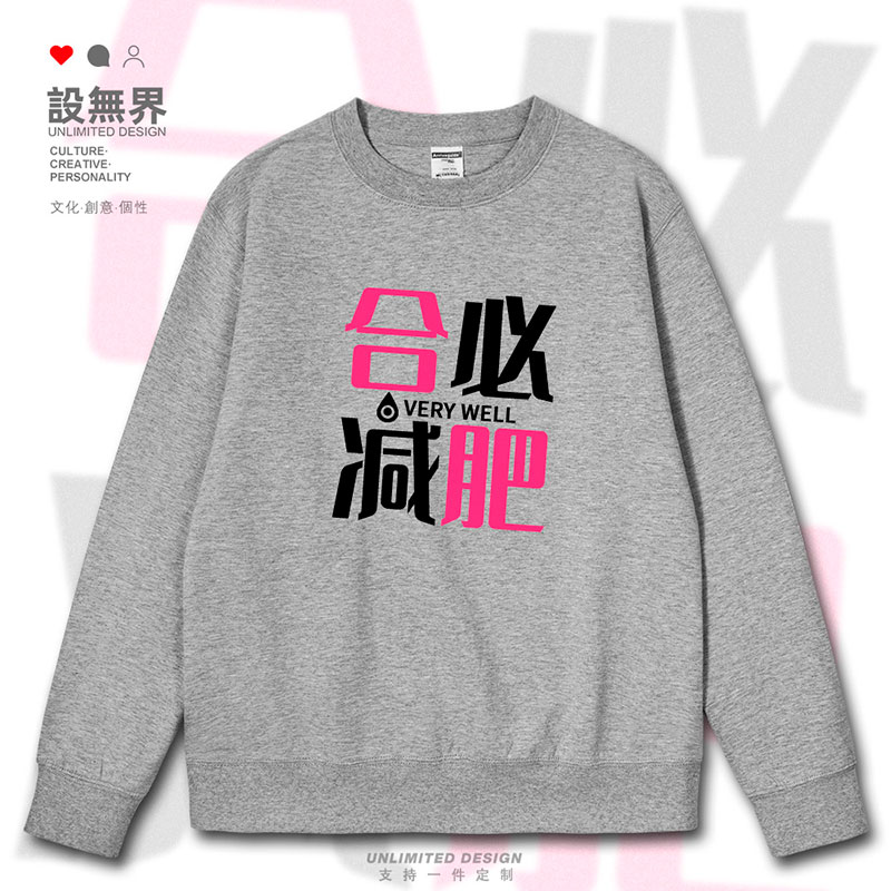 无界 潮设 合必减肥词语谐音梗趣味连帽卫衣男女个性 创意套头帽衫