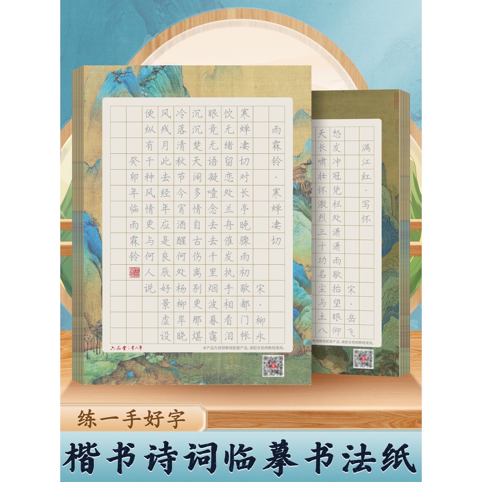 学生硬笔临摹书法纸楷书古诗词练字帖a4练字本成人初中生大学生钢笔女生男生每日一练描红练习 活页精美插画古诗描红练字帖