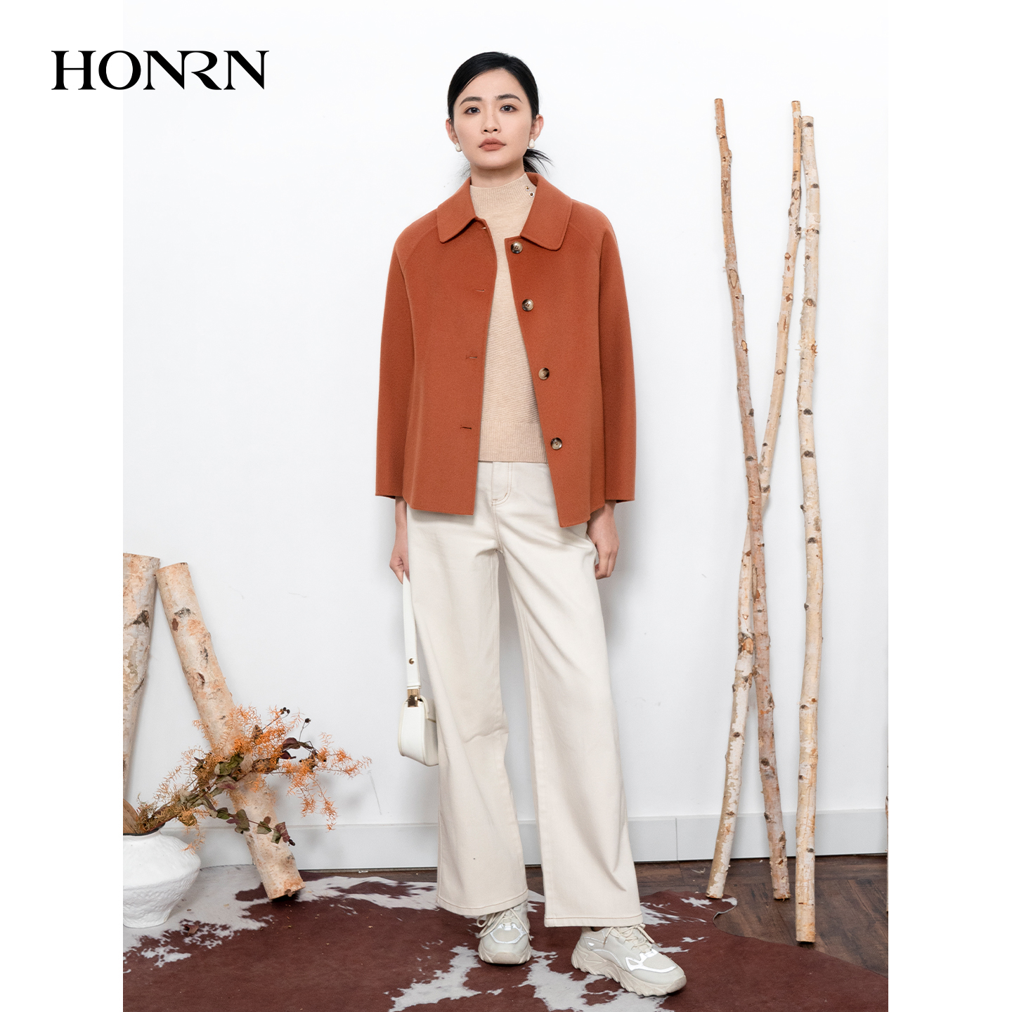 Moda毛呢大衣25秋冬新款 Vero 含羊毛羊绒双面呢收腰外套 赫本