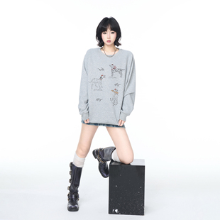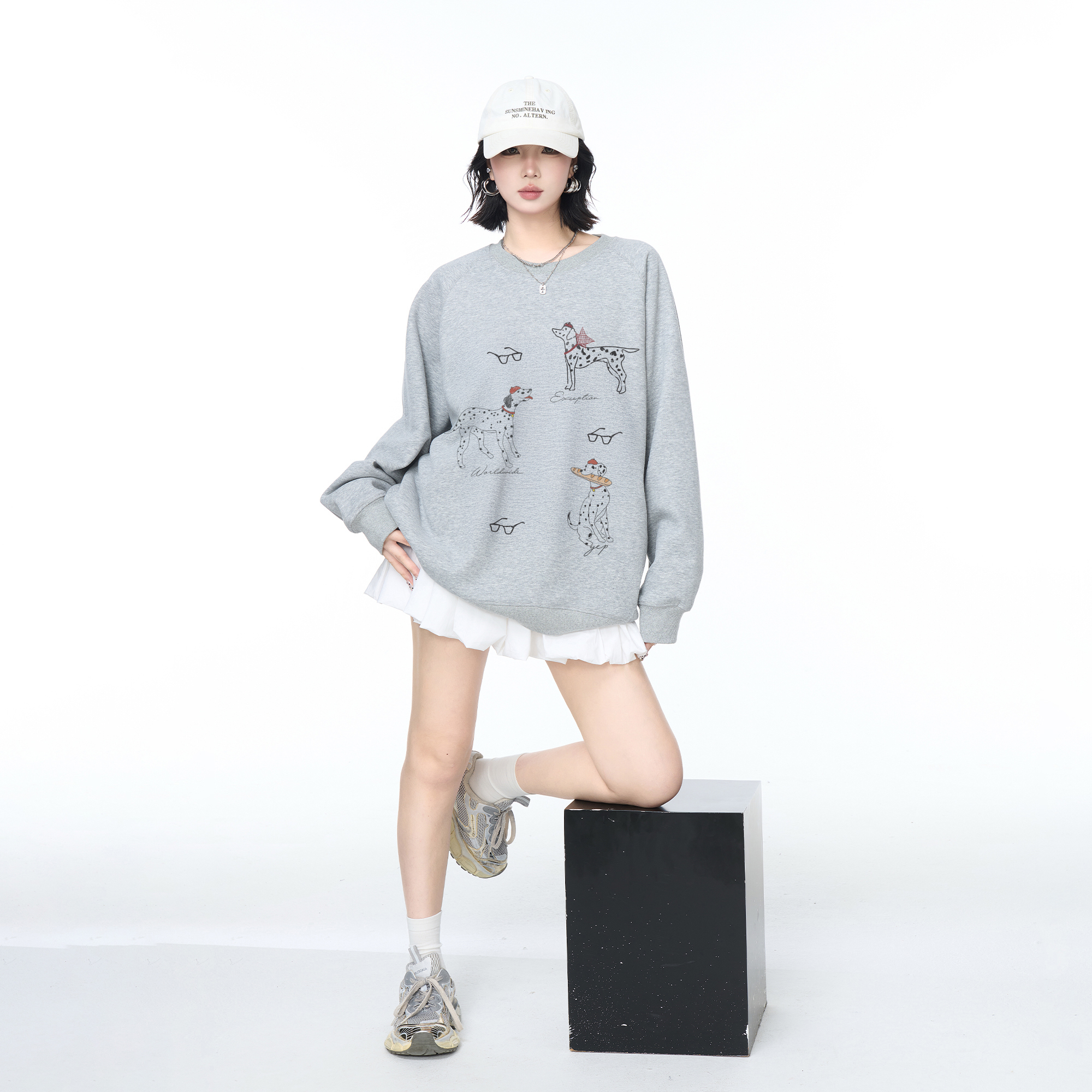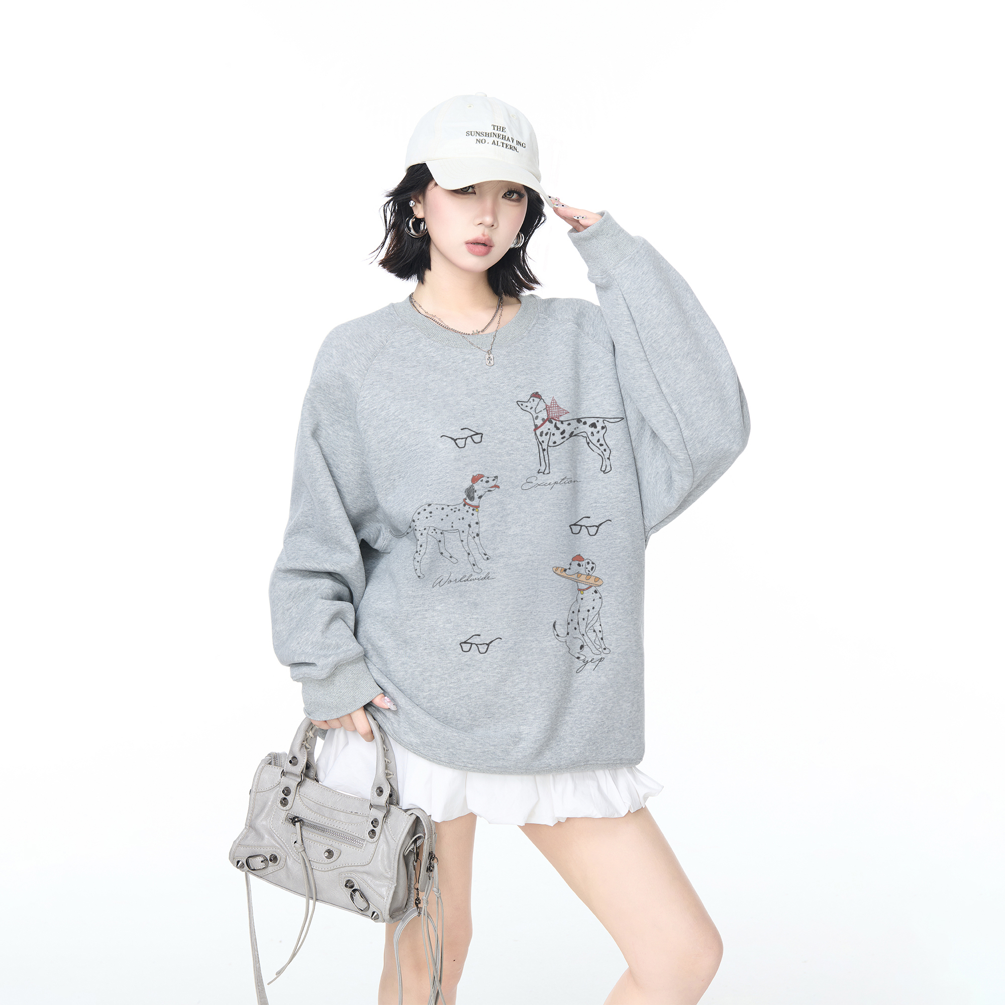 潮牌宽松情侣款 美式 上衣 斑点狗卫衣女2025春秋新款 YEP插肩袖