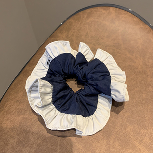 韩系时尚 发绳女 褶皱花边蓝牛仔发圈品质布艺肠圈头饰2025秋冬新款