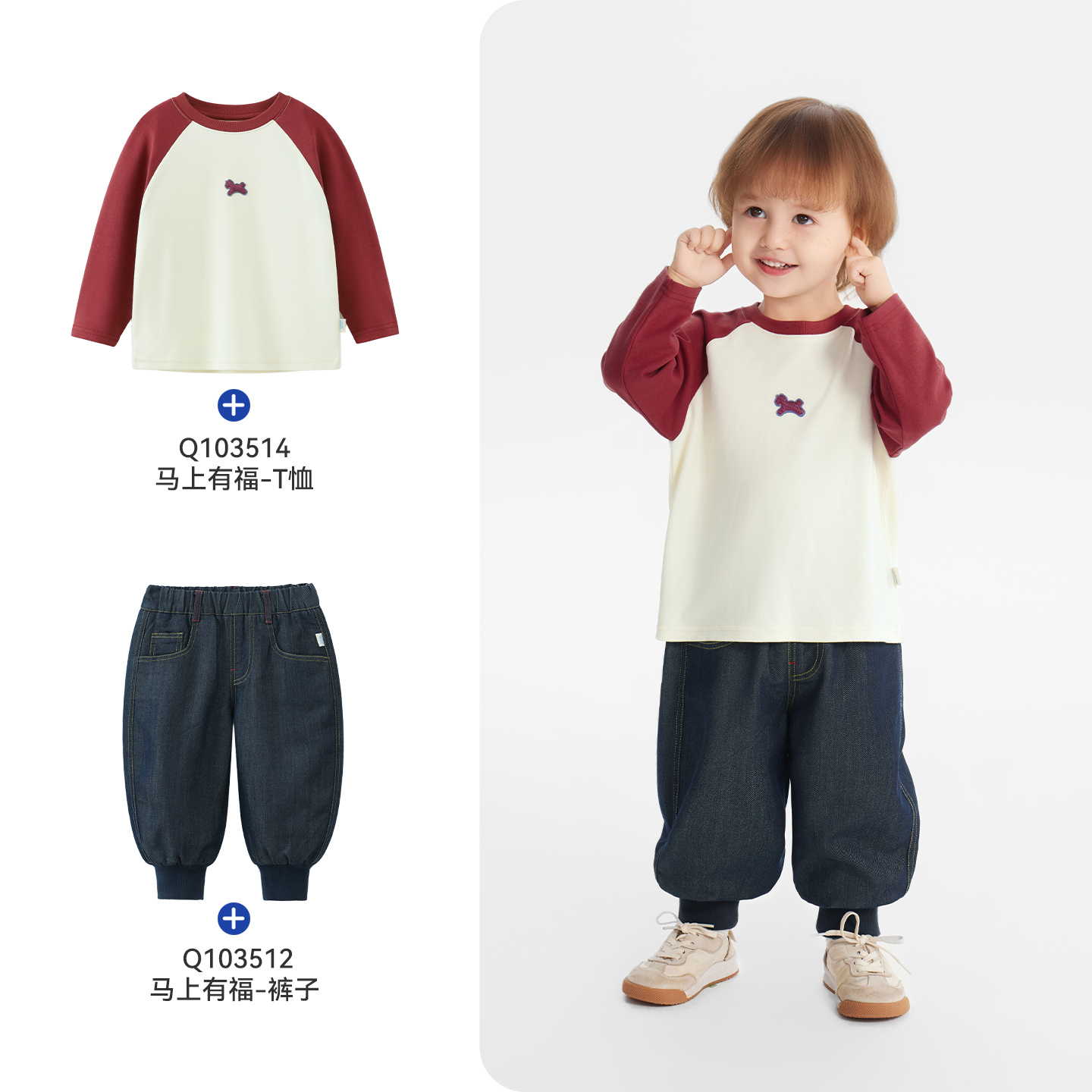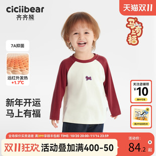 宝宝打底衫 秋冬款 齐齐熊男童t恤长袖 儿童新年年服儿童 抗菌发热