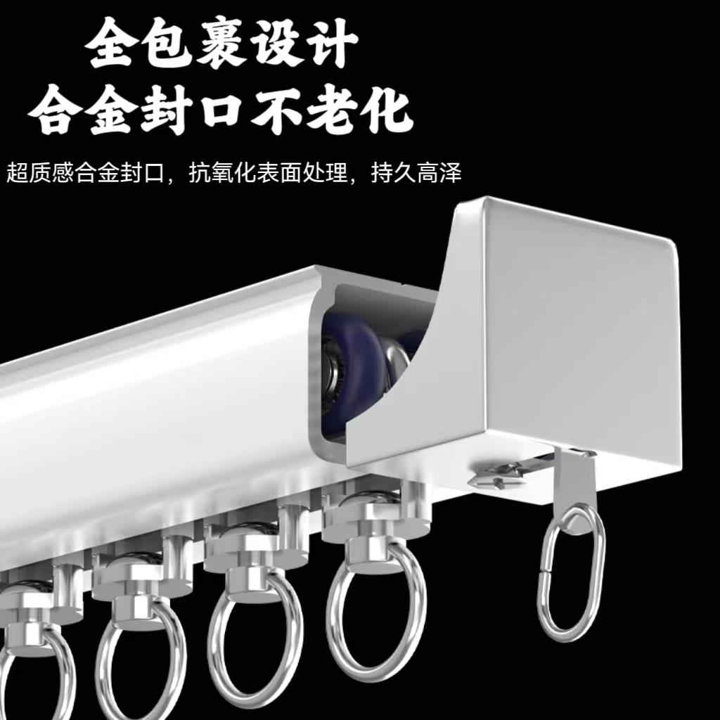 特厚铝合金窗帘轨道滑轮滑轨滑道直弯导轨单双顶侧装 静音轨道轴承