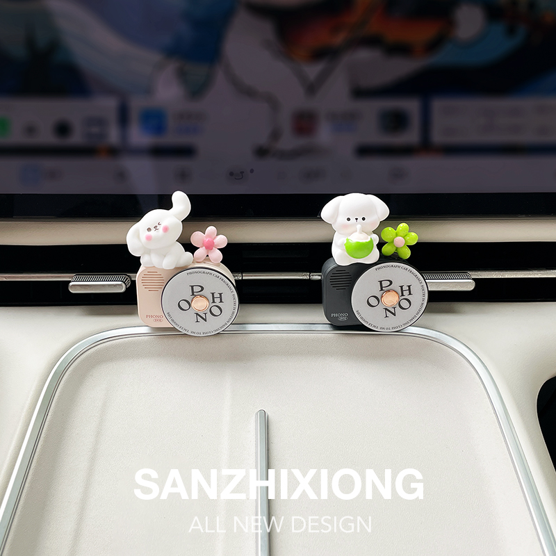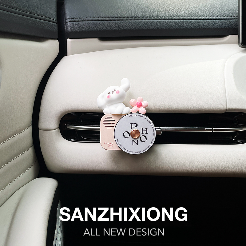 车载香薰复古CD机唱片车内出风口装 饰品可爱公仔汽车香水夹香氛