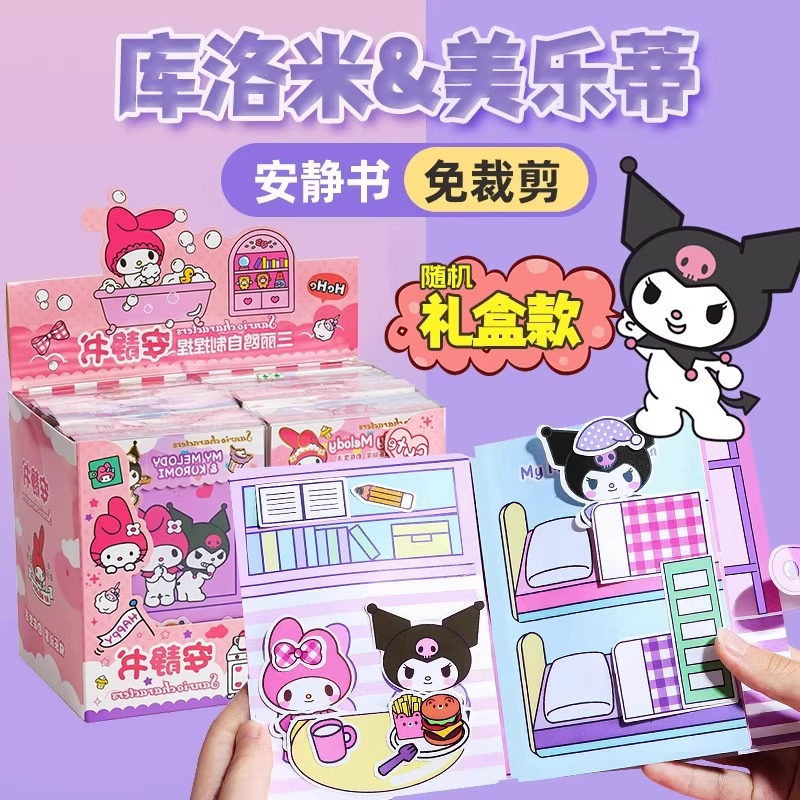饰手工制作材料包化妆书安静书女童6岁 贴纸装 库洛米安静书新款 女孩儿童解压玩具免裁剪立体diy美乐蒂小屋换装