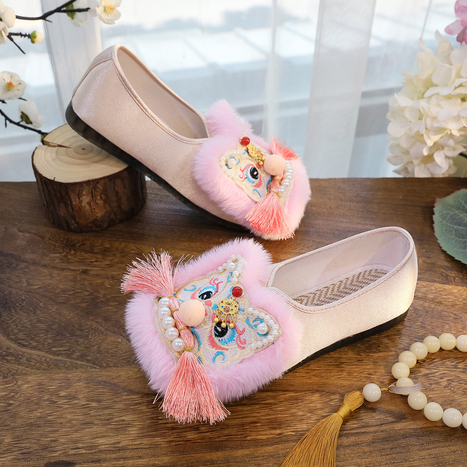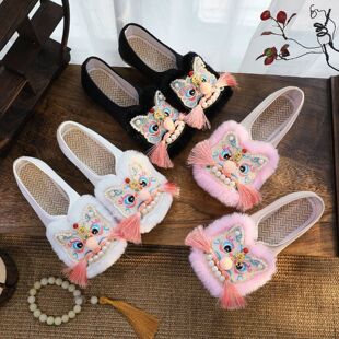 2025新款 古风绣花鞋 布鞋 盘扣绣花拖鞋 女平底软底新中式 暖秋虎头鞋