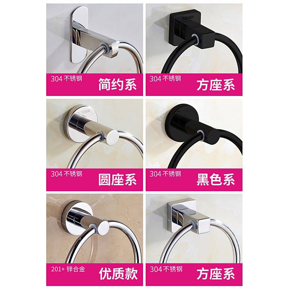 304不锈钢毛巾环免打孔圆形毛巾架浴室圆环形毛巾挂圈擦手巾挂环