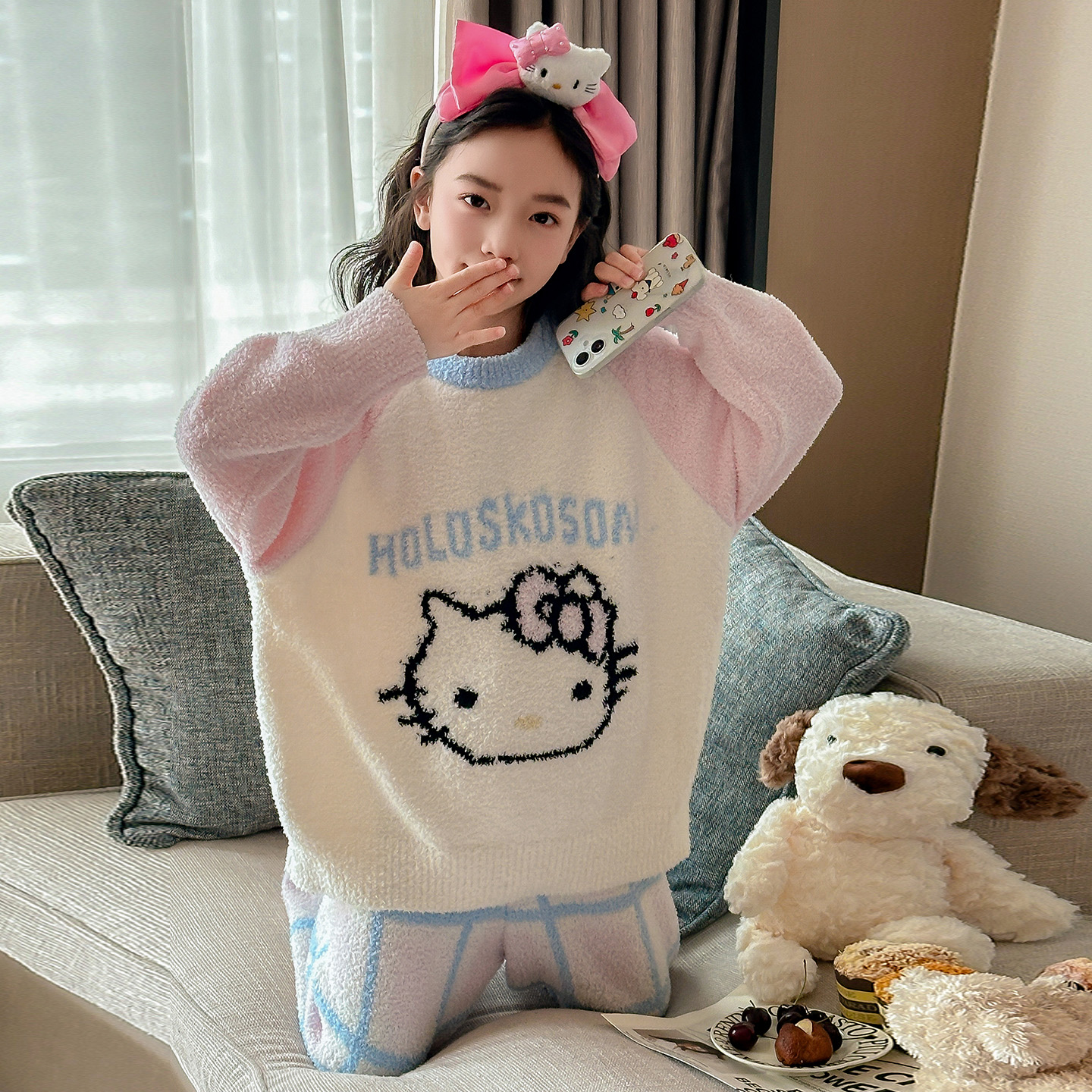 大童半边绒潮 女孩洋气冬季 贝田女童睡衣2025新款 儿童家居服秋冬款