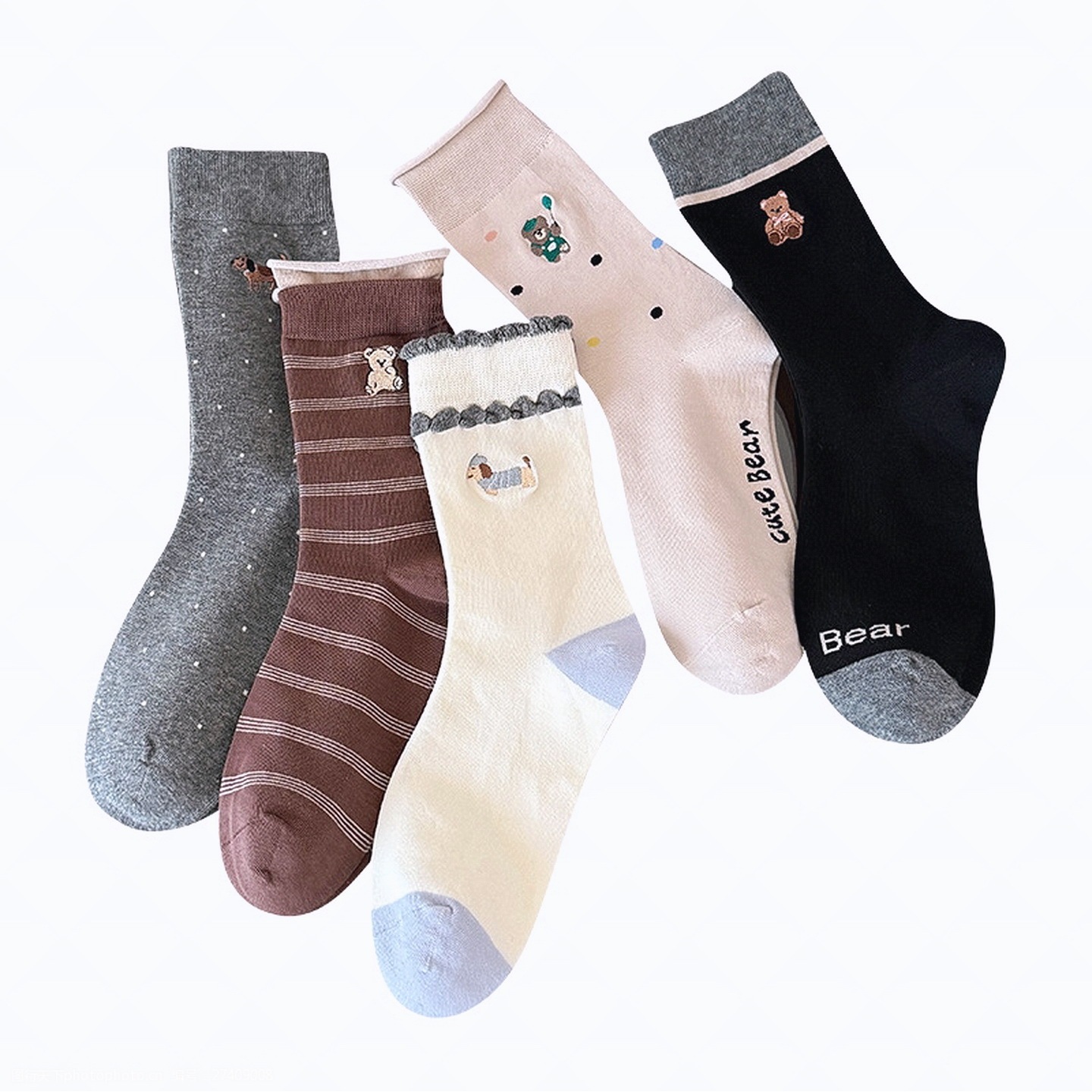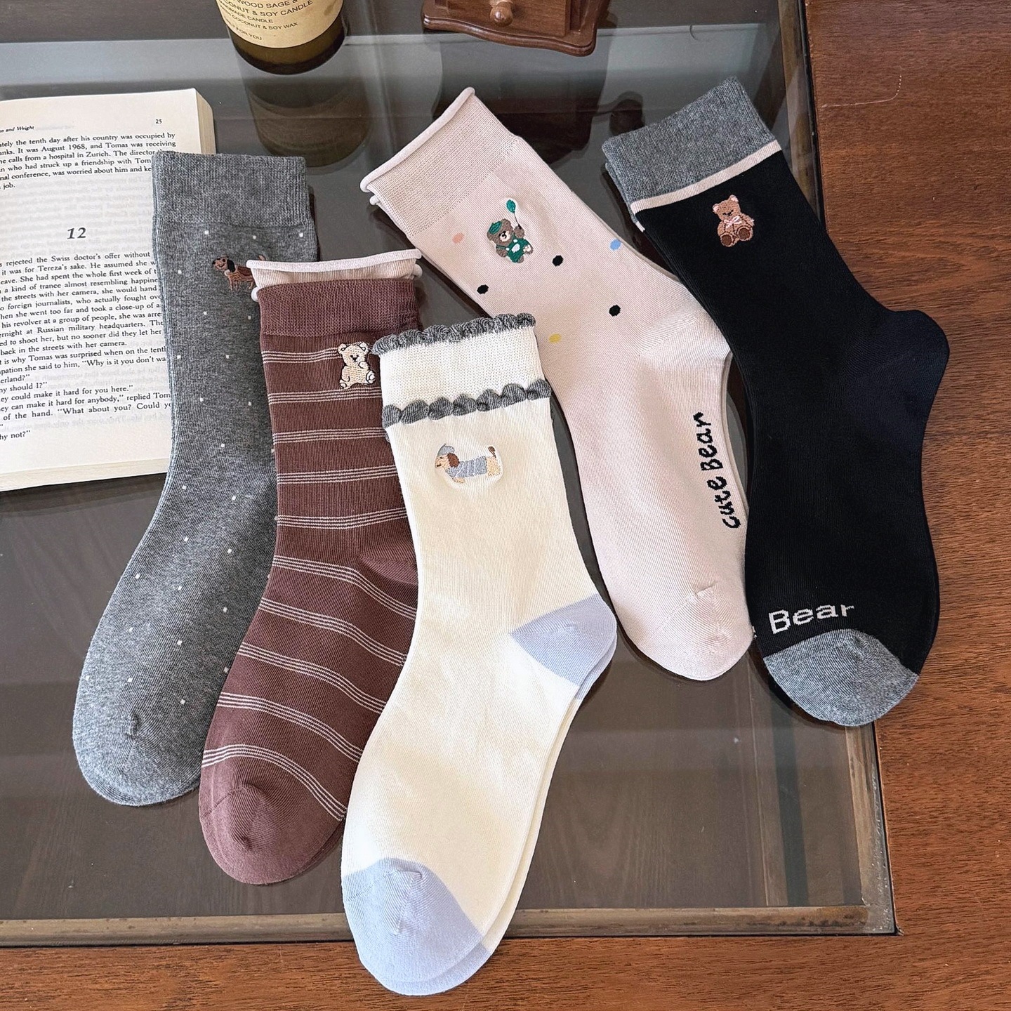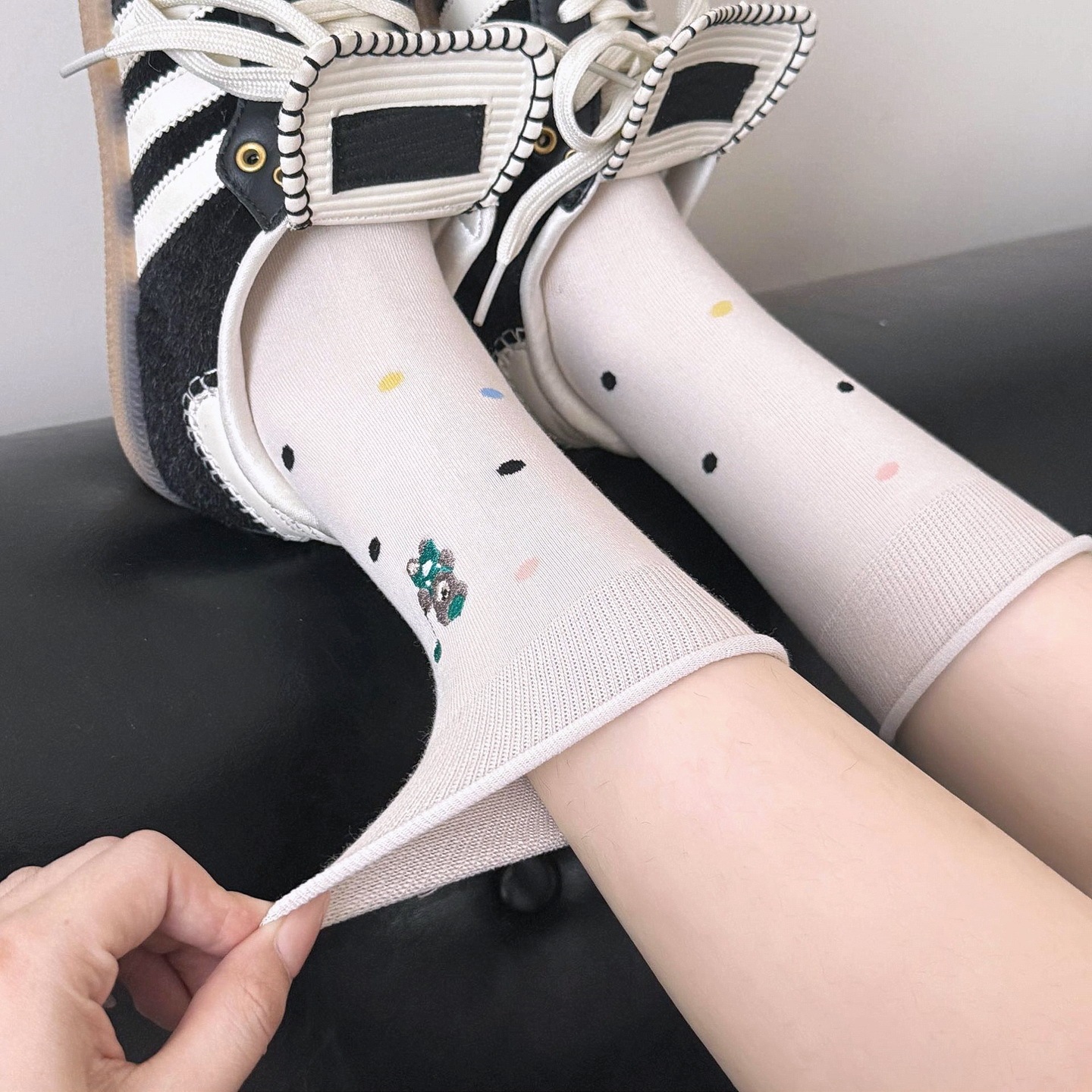秋季 潮流外穿中筒袜子女花边超火袜子 刺绣小狗可爱学院风韩式