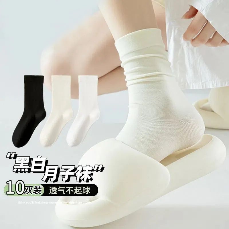 百搭月子袜 无骨2025新款 白色堆堆袜子女春秋款 中筒袜纯棉配小皮鞋