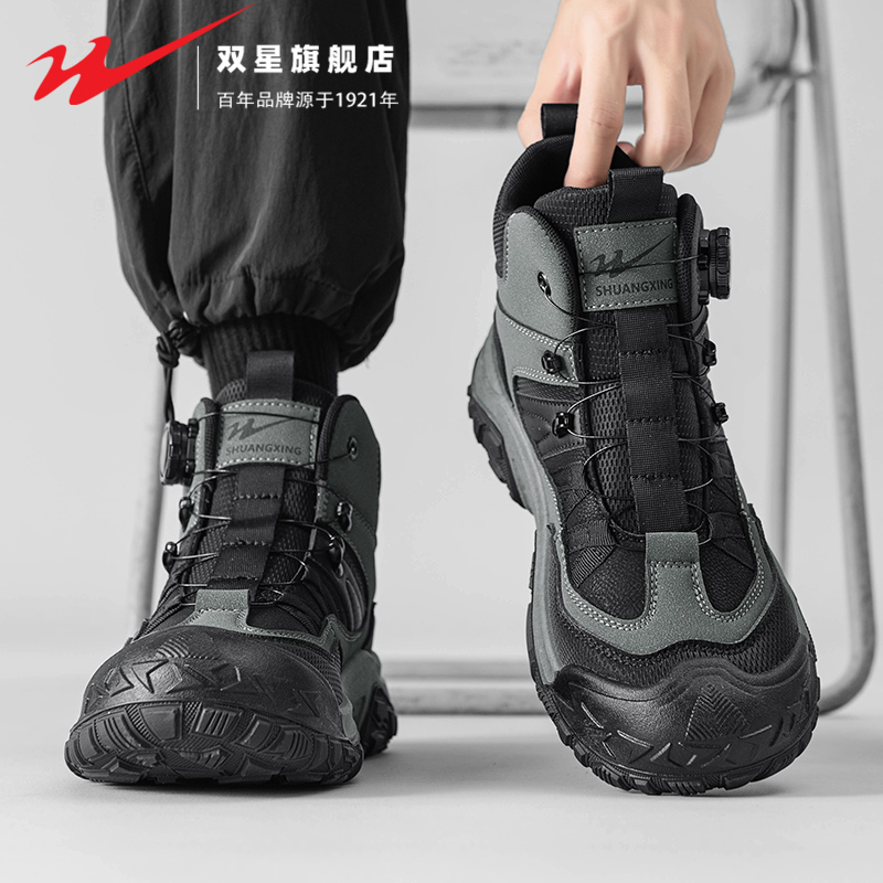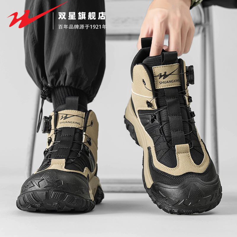 徒步鞋 回力登山鞋 户外越野高帮工装 防泼水秋冬新款 加绒马丁靴 男士