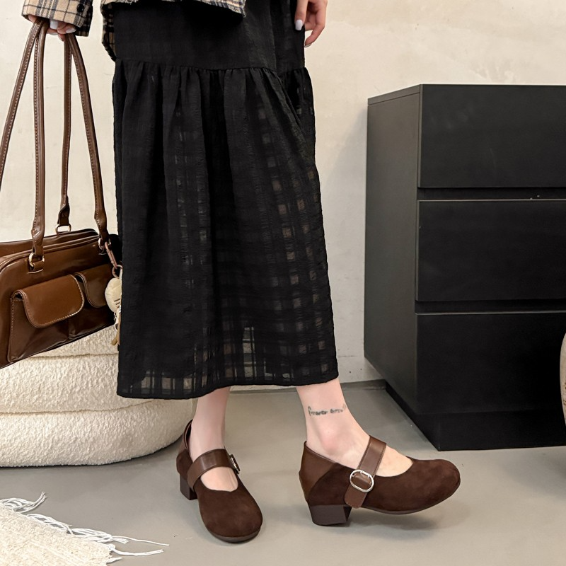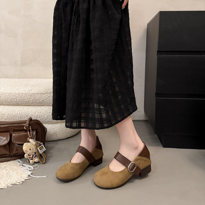 复古豹纹玛丽珍豆豆鞋 粗跟增高单鞋 女2025新款 一字带瓢鞋 秋季 法式