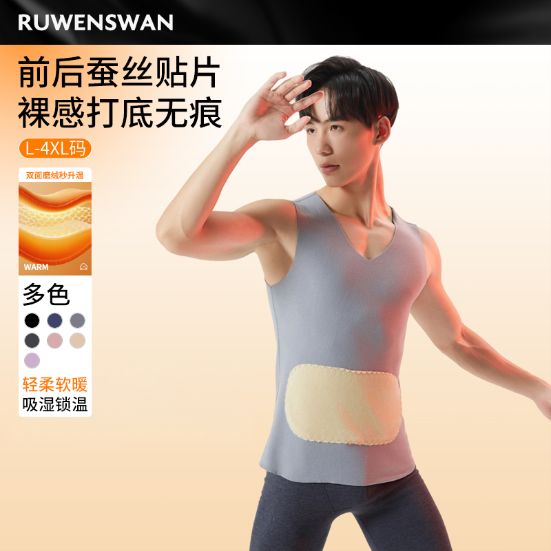 如吻黑天鹅贴片无痕保暖背心男女士无袖 德绒发热内衣打底加绒马甲