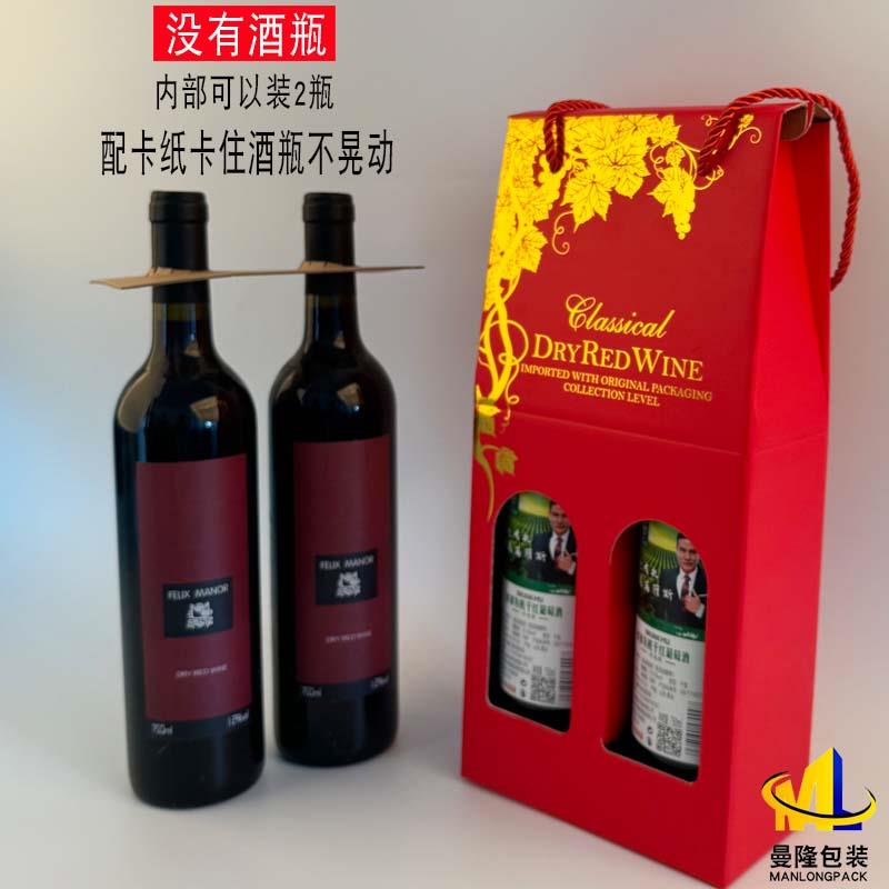 袋盒子手提袋子双支葡萄酒盒2支装 红酒包装 定制纸盒带卡口 5个