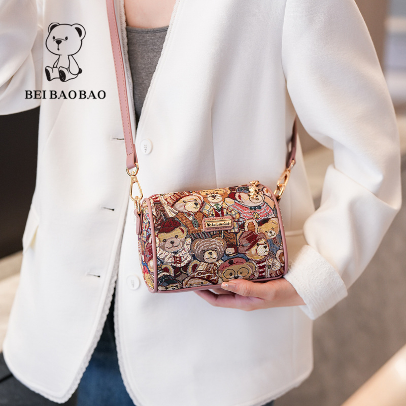 可爱 时尚 北包包2025新款 女包清新甜美单肩小熊包包简约百搭斜挎款
