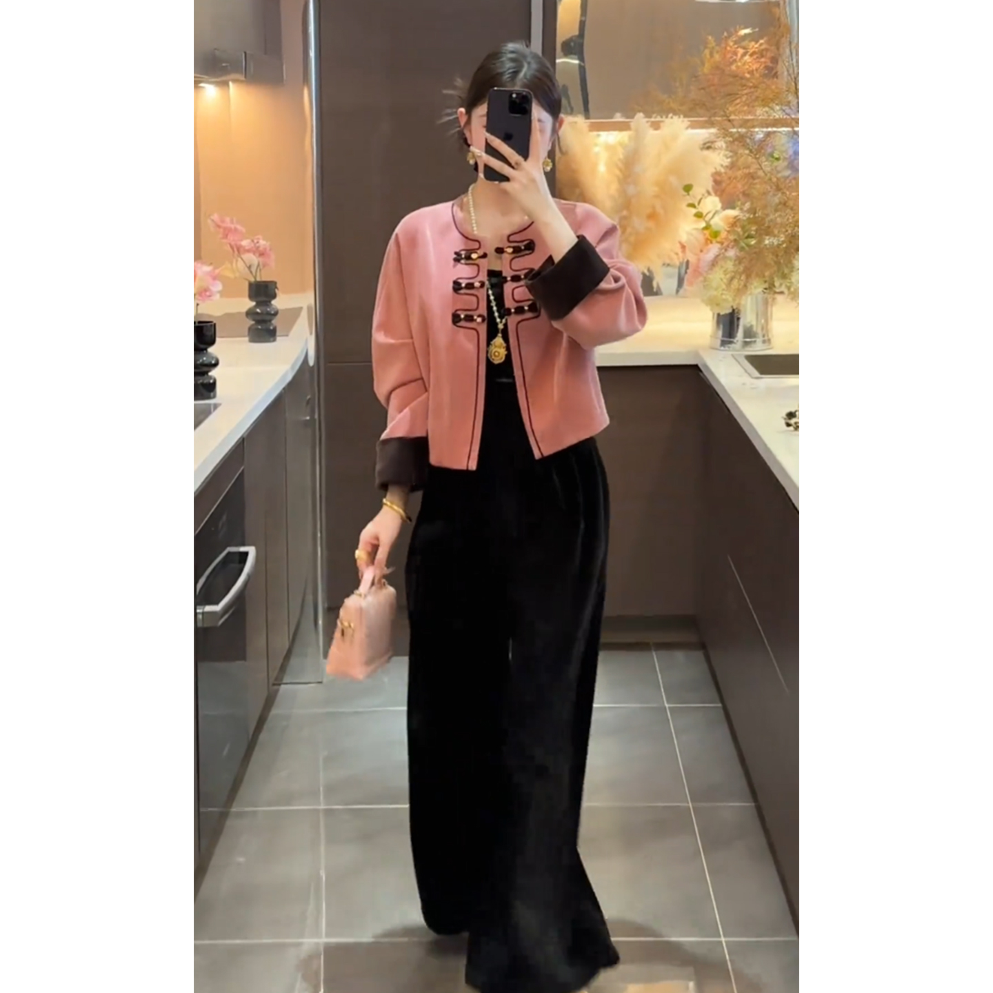 宽松外套显瘦阔腿裤 拉夏贝尔新中式 新款 女2025秋季 两件套 国风套装