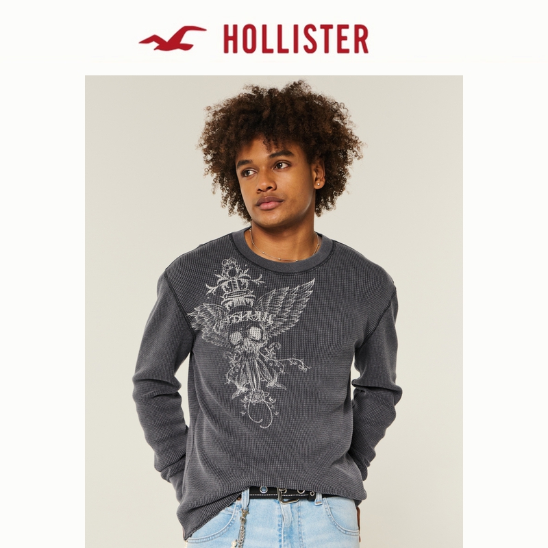 323 Hollister25秋冬新款 女装 T恤男装 5327 情侣印花华夫格长袖