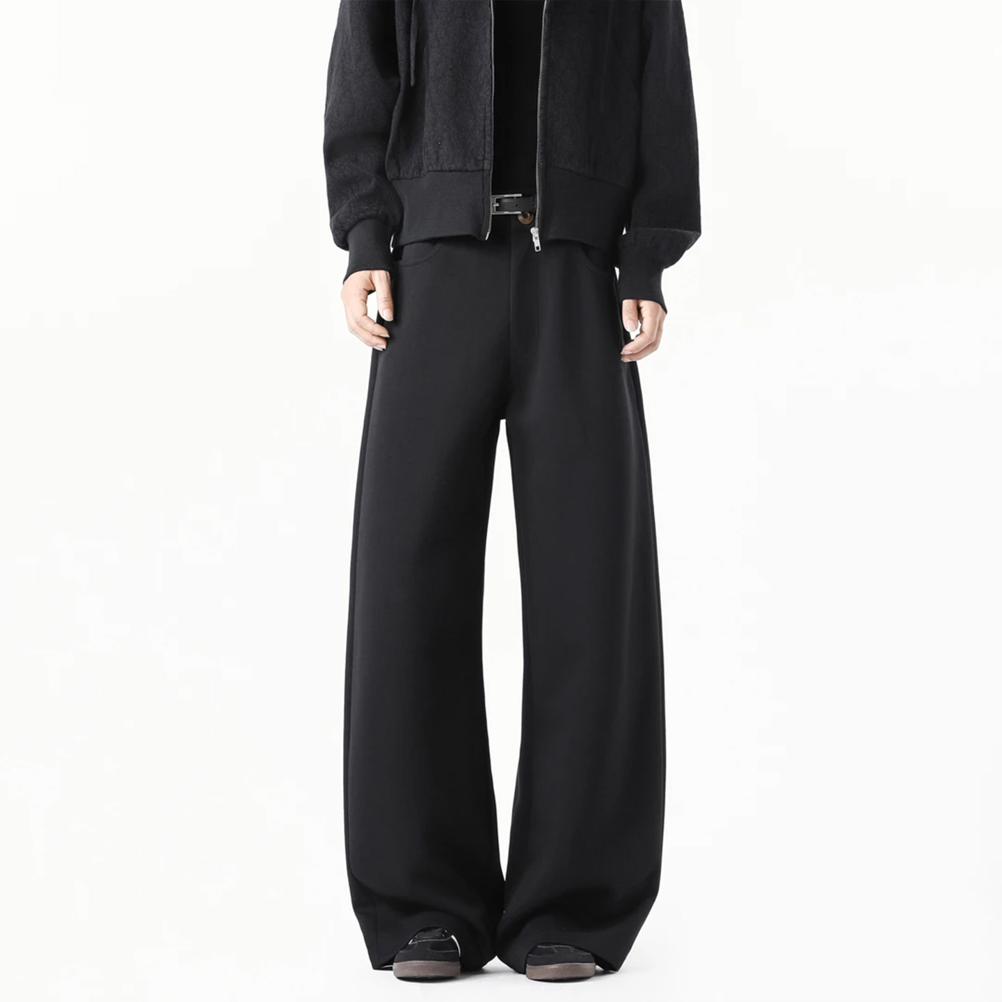 女春秋新款 休闲直筒慵懒松弛感裤 高腰垂感窄版 裤 子 西装 黑色阔腿裤