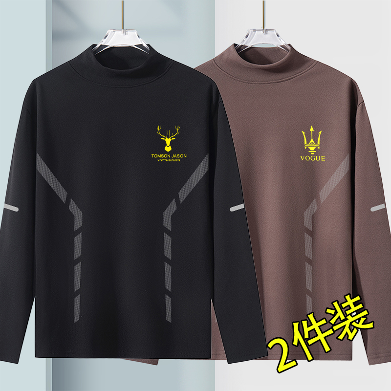 打底衫 休闲男女款 翻领加厚保暖上衣 T恤男修身 秋冬双面绒高领长袖