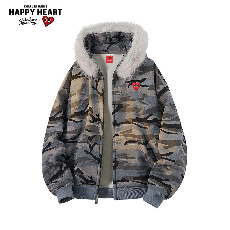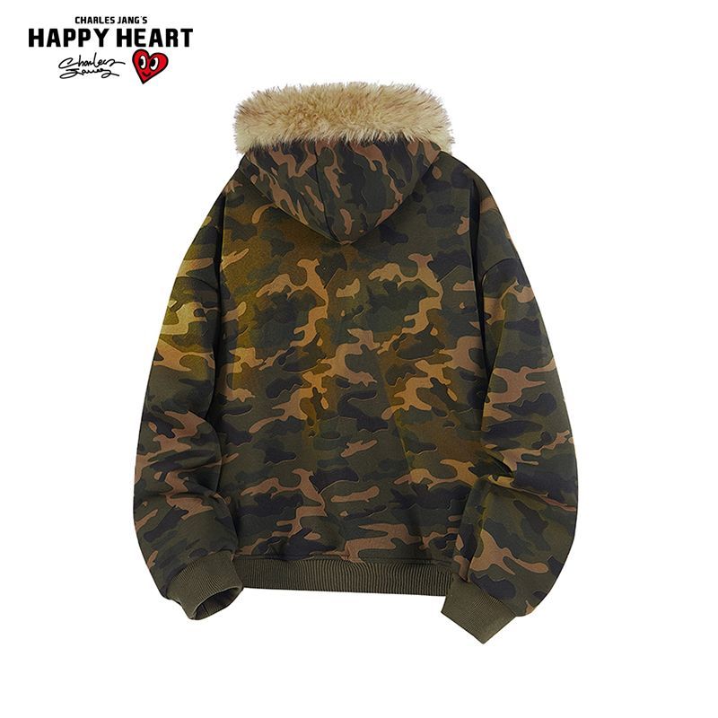 潮牌费尔岛花纹印花连帽卫衣高街情侣毛领外套男 Achock官方店