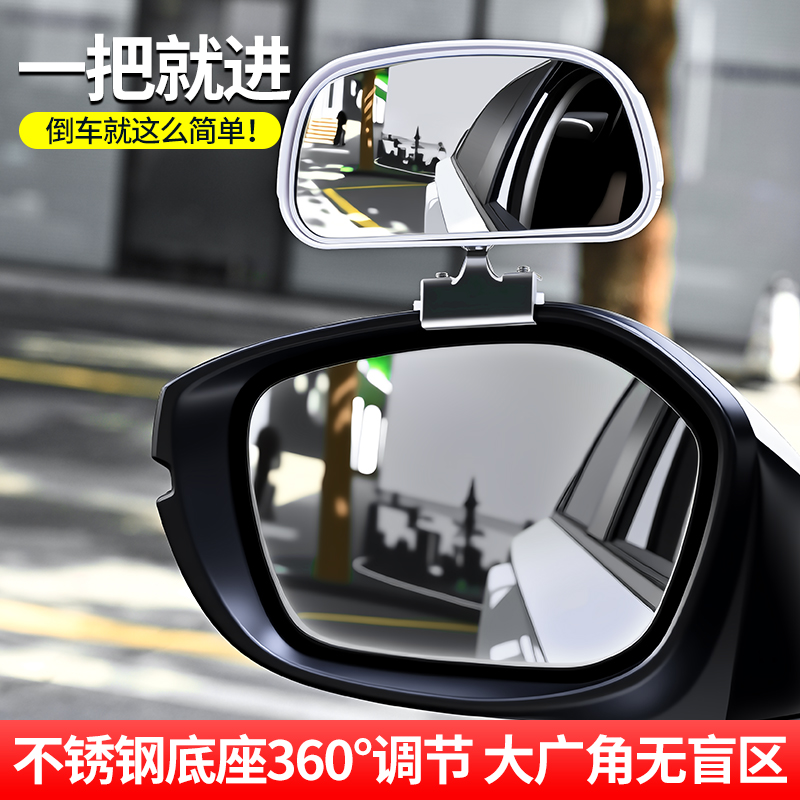 汽车后视镜辅助镜大视野广角镜教练镜可调节倒车盲区镜不锈刚夹子