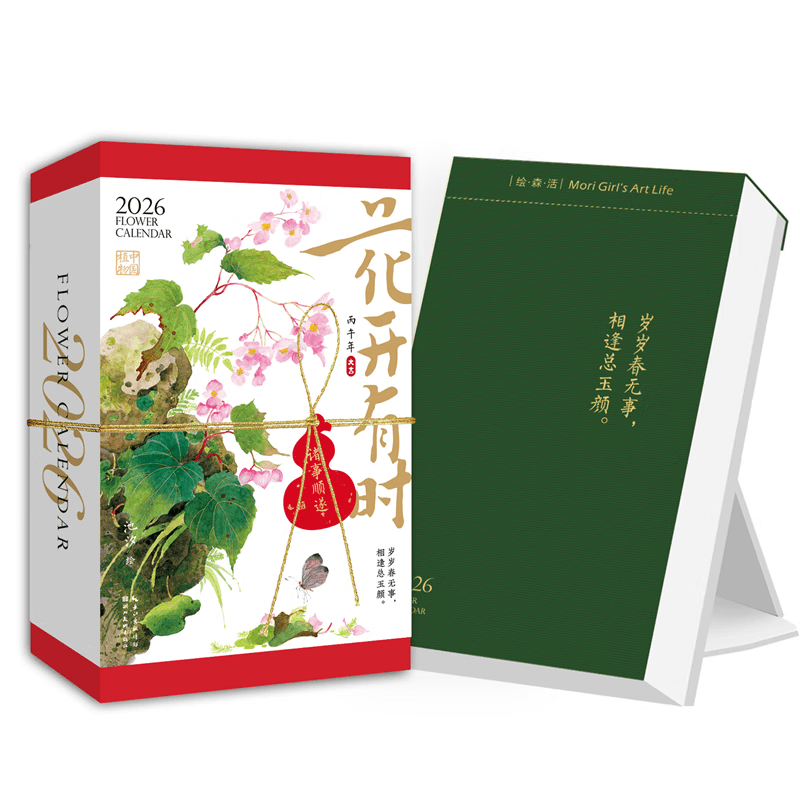 2026年日历 花开有时日历 国风水彩花卉插画手账节气诗词日历 丙午马年日历台历 翻页手撕桌面摆件礼物礼品 央视网赠贺卡