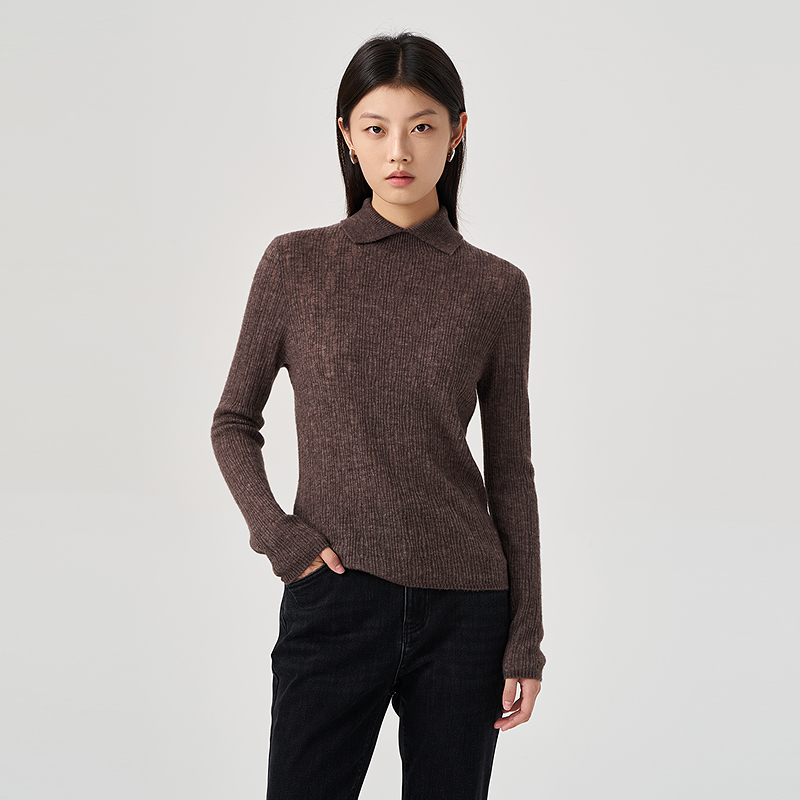 新品 针织衫 简约POLO领毛织套头衫 显瘦基础款 女修身 OTT2025冬季