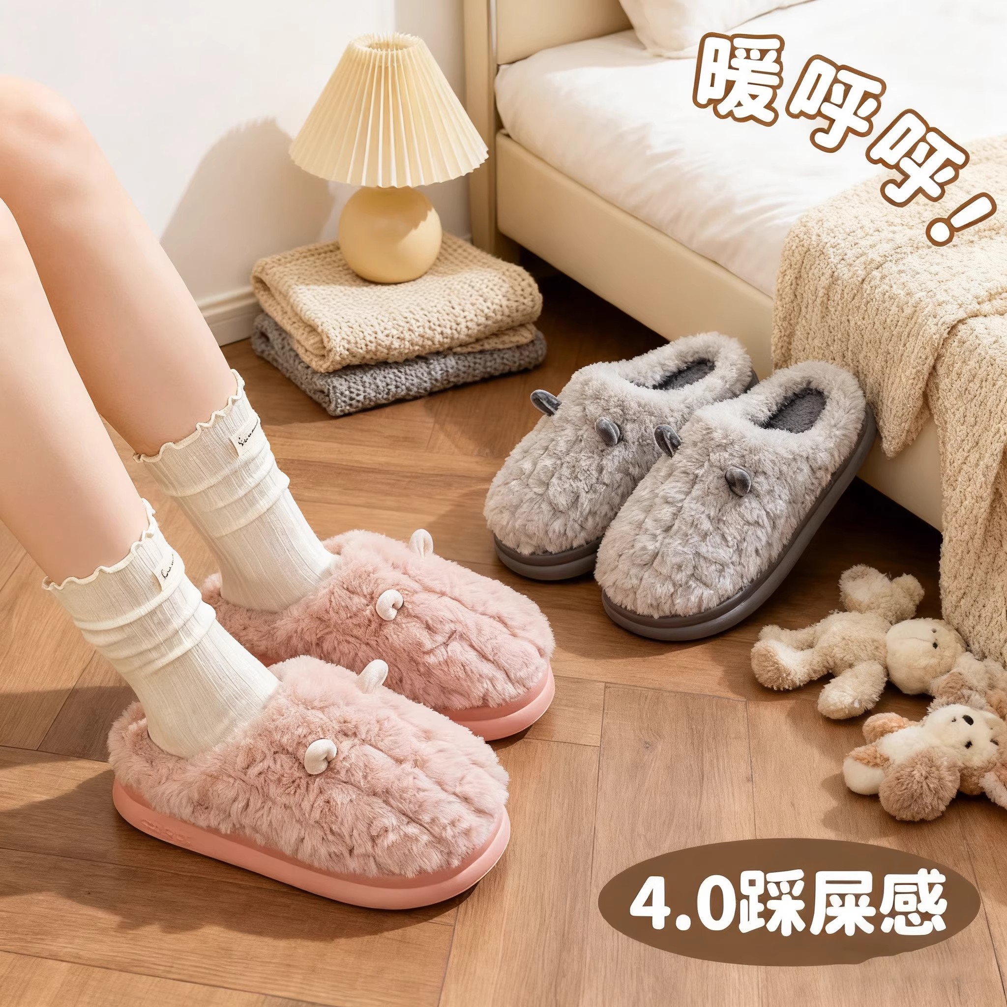 厚底保暖踩屎感棉拖男 室内家居女士秋冬毛毛拖鞋 2025新款 毛绒拖鞋